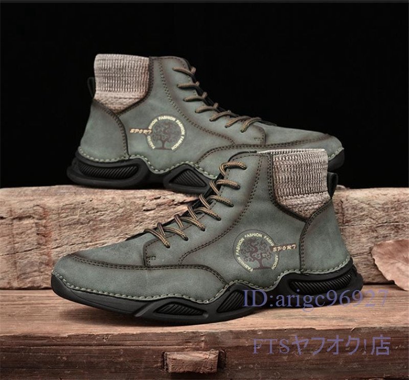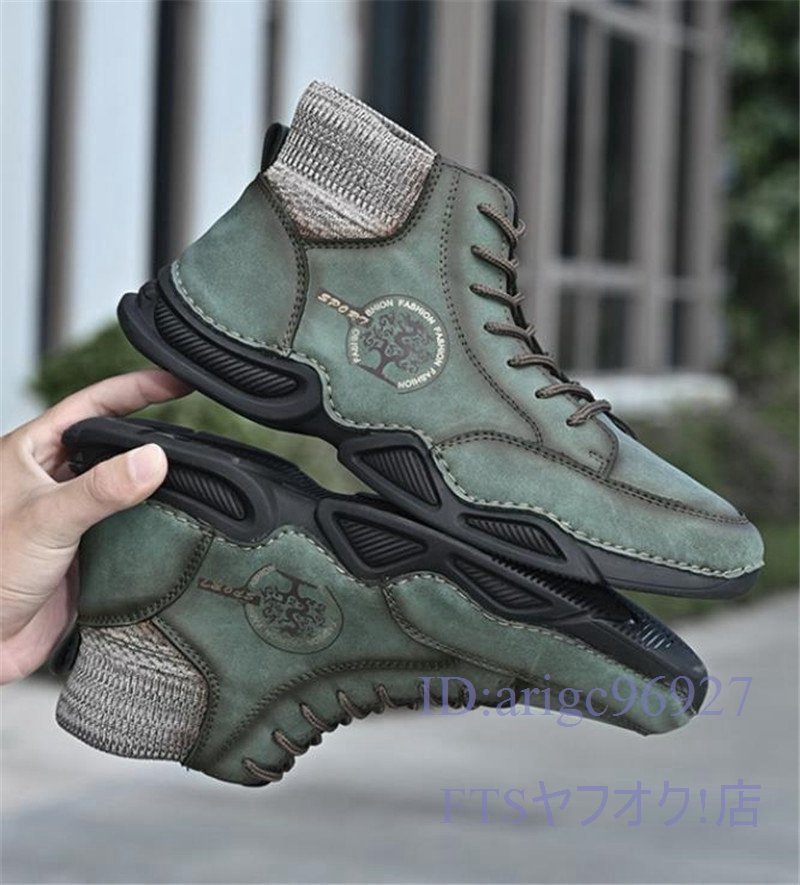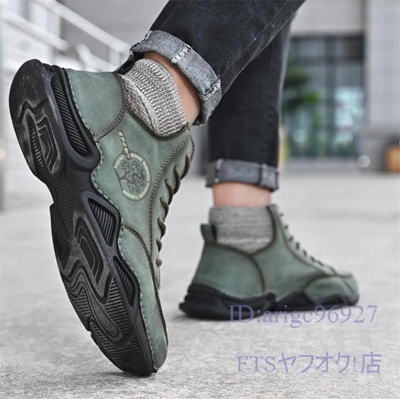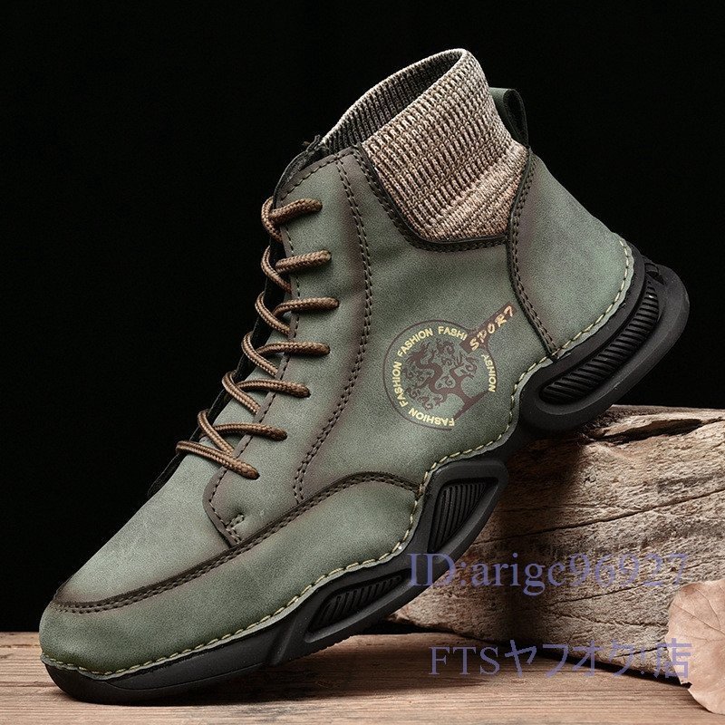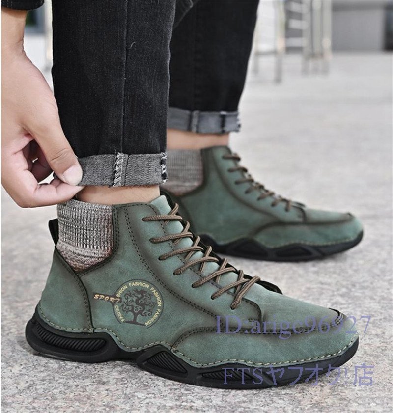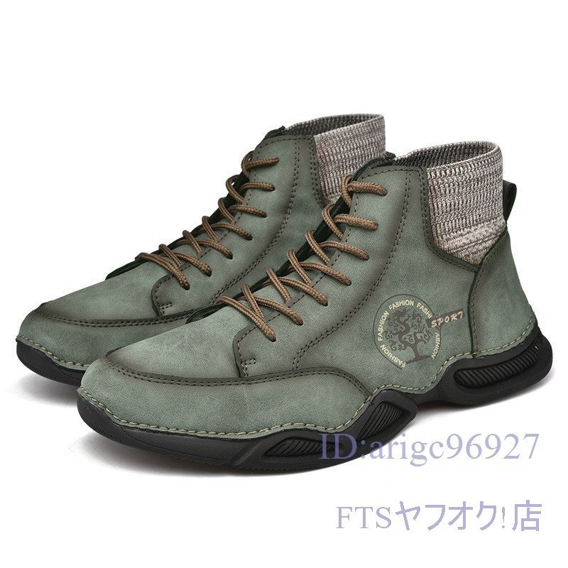 T985☆新品マーティンブーツ ハイカット カジュアルブーツ メンズ ショートブーツ 春秋靴 ドライビングシューズ グリーン 25.5cm