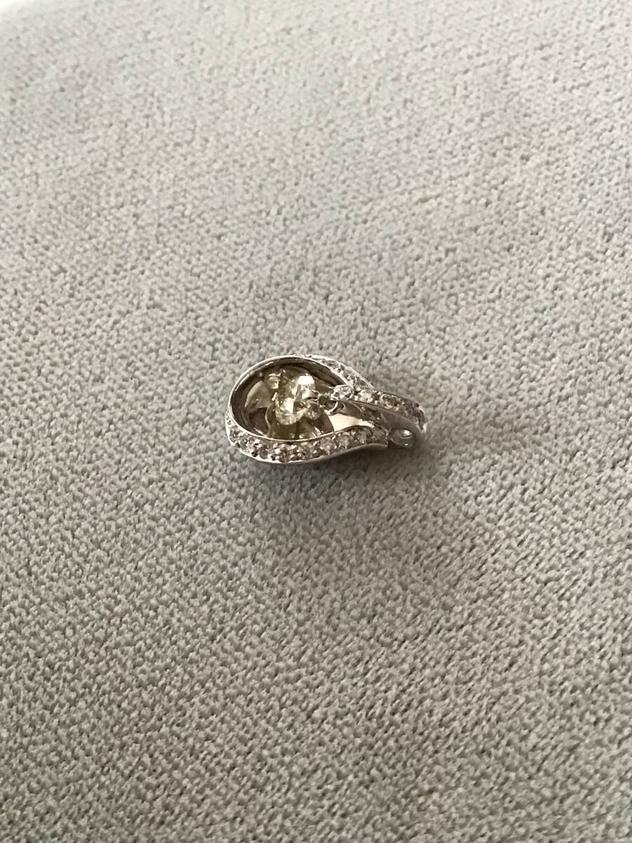 中央のダイアモンドが少しの動きでゆらゆらと揺れて、目を惹くデザインです。