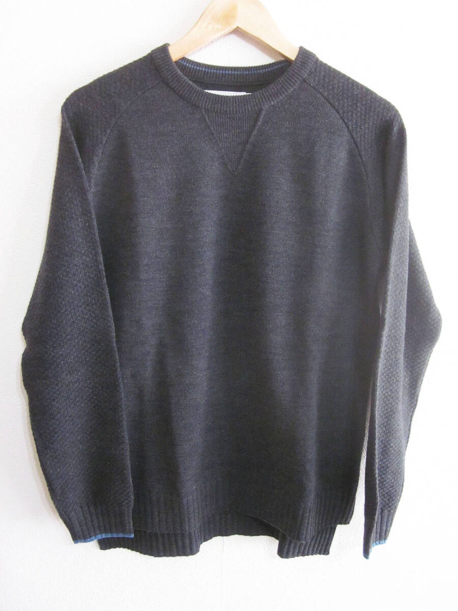 送料無料!! TURN ME ON ターミーオン 前V ガゼット ラグランスリーブ 切替 ニット セーター グレー M 日本製 STILL WATER INC.