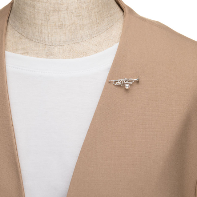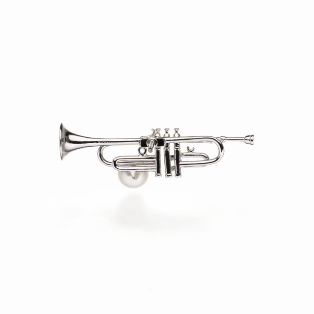 トランペットの曲線美を忠実に再現したフレームに、5.0ミリの日本産アコヤ真珠をあしらいました。