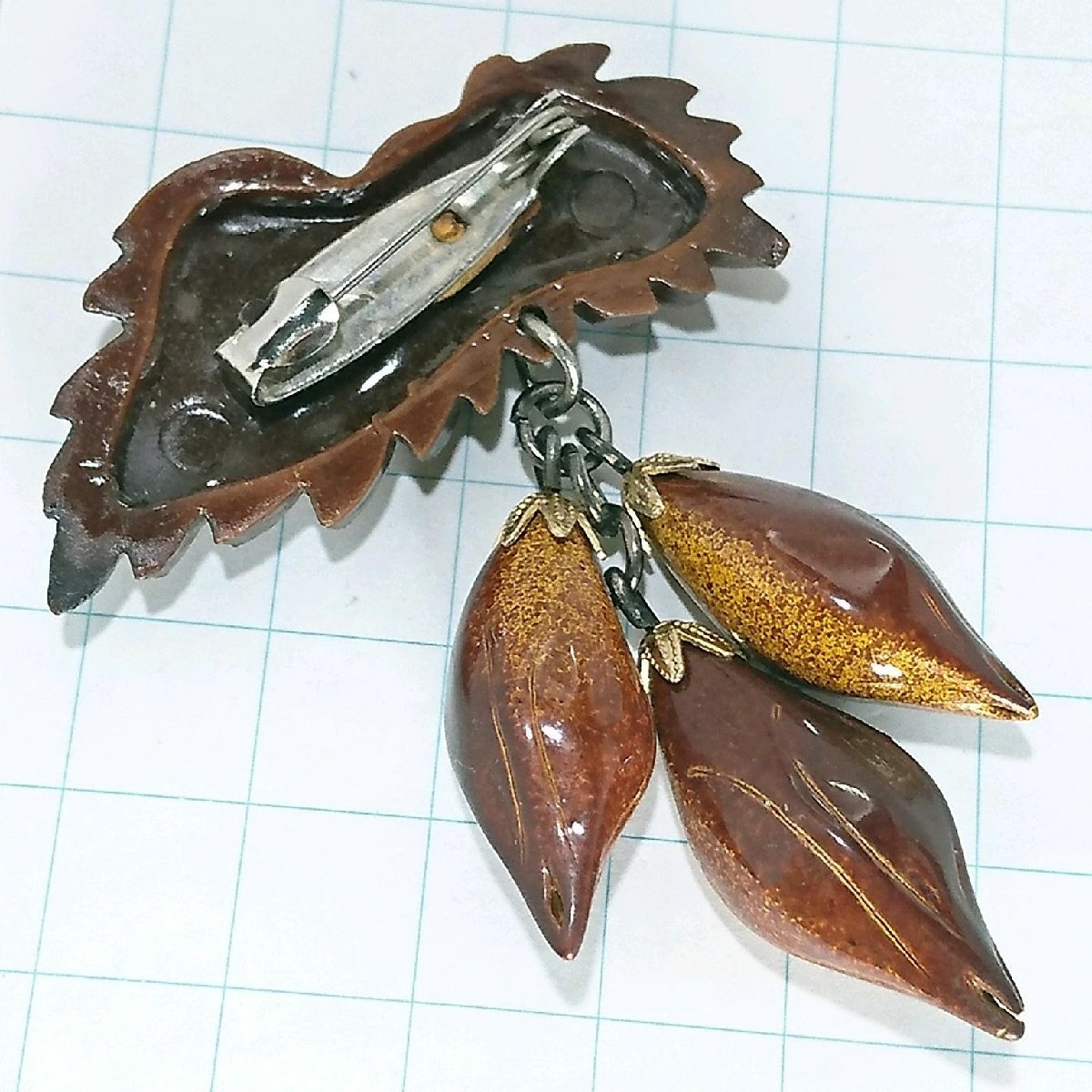送料無料)ビンテージ☆木彫り 木の実モチーフ☆アンティーク ブローチ A22733