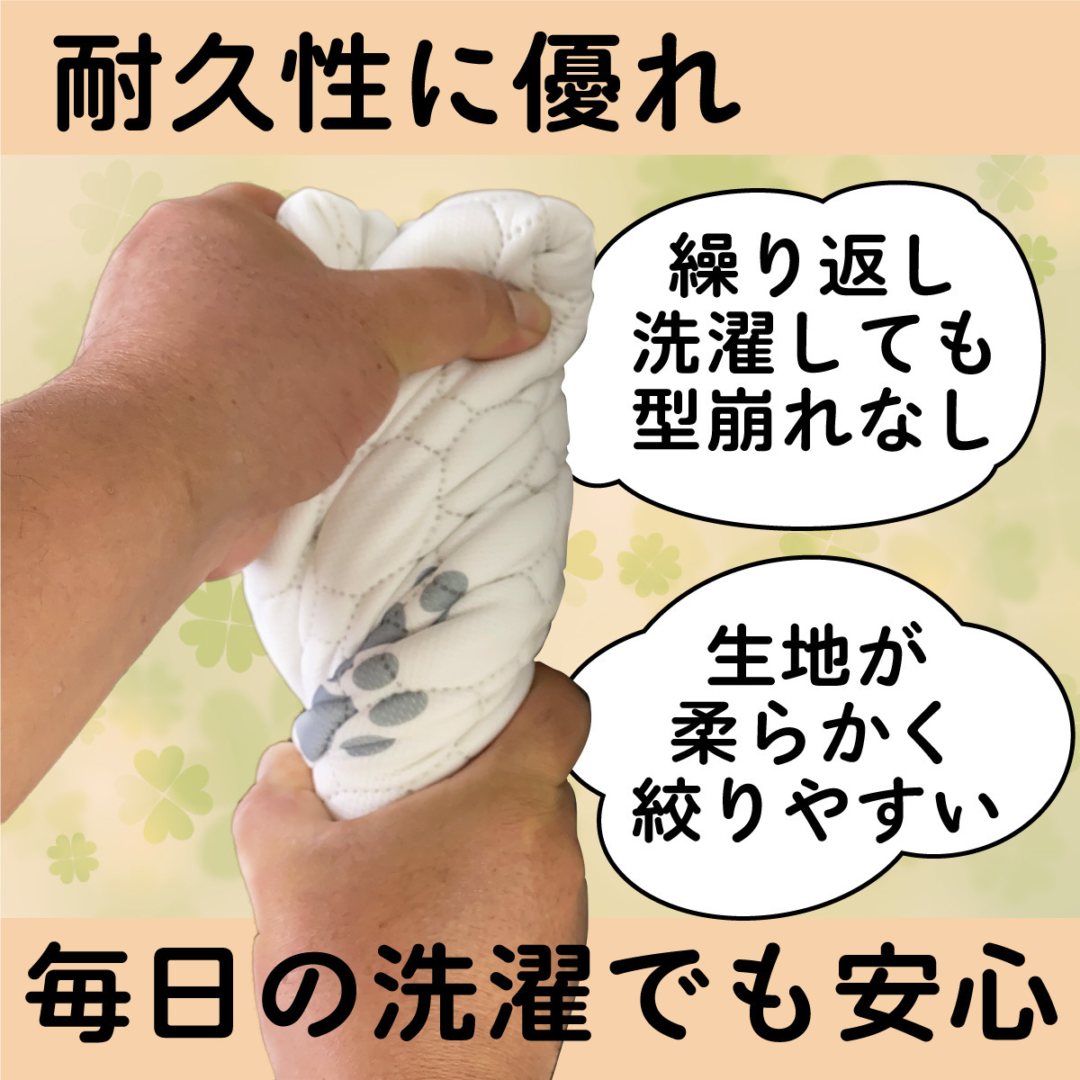 耐久性に優れたポリエステル素材とキルティング加工で 毎日の洗濯でもガシガシ洗えます。