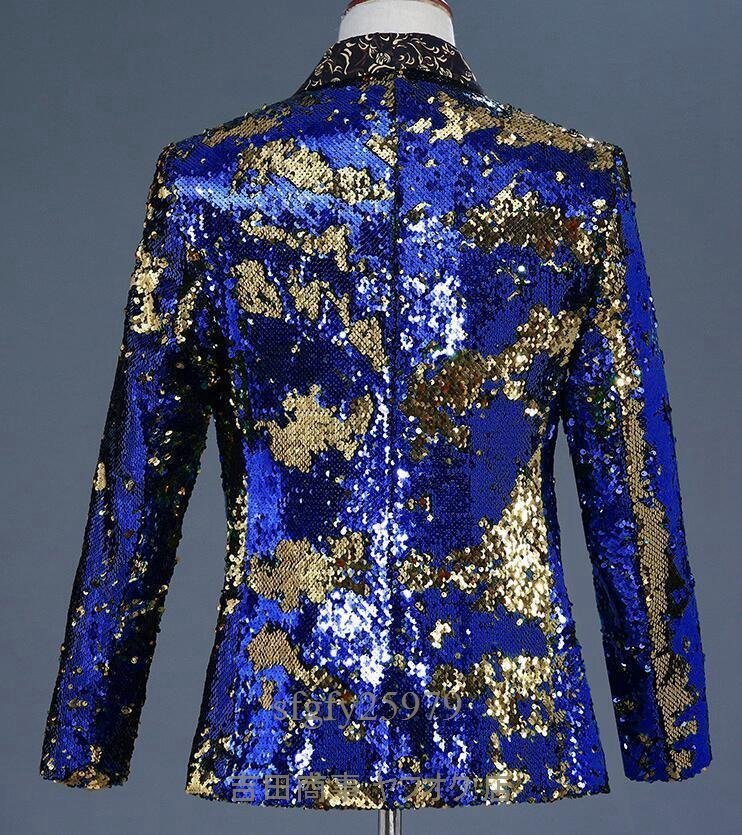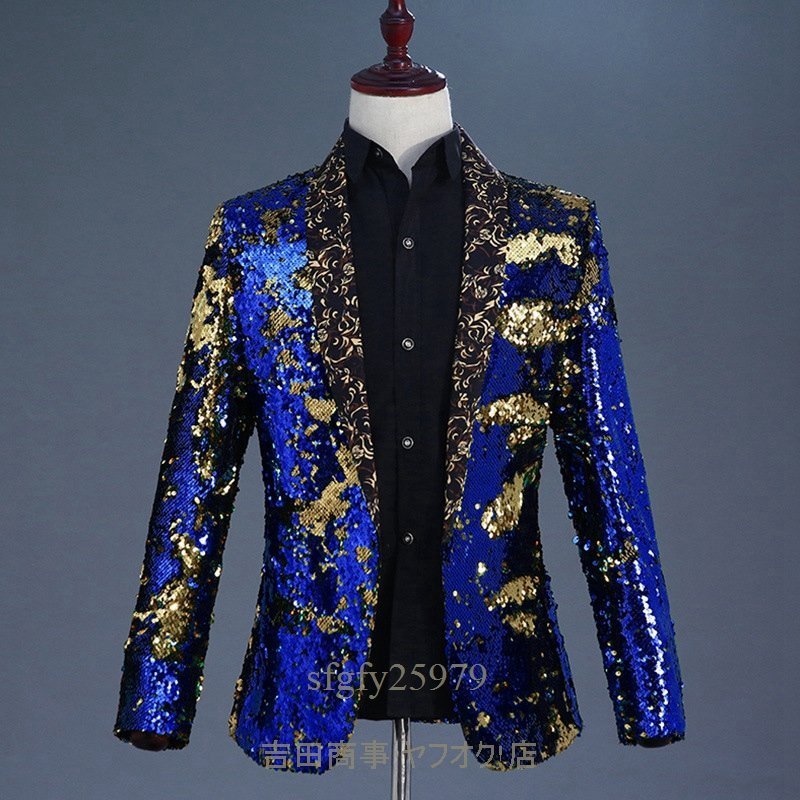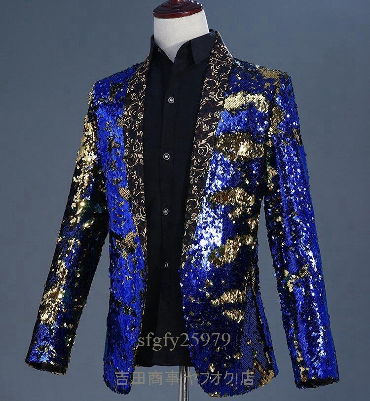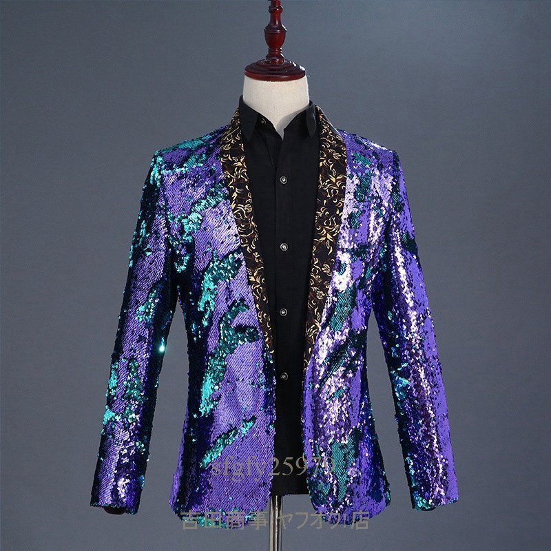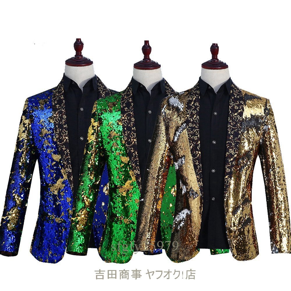 A7618新品 上質2点 ブルスーツセット6色展開スパンコール タキシード ステージ衣装メンズ上着ズボンM L-5XL司会 演奏会 発表会 緑