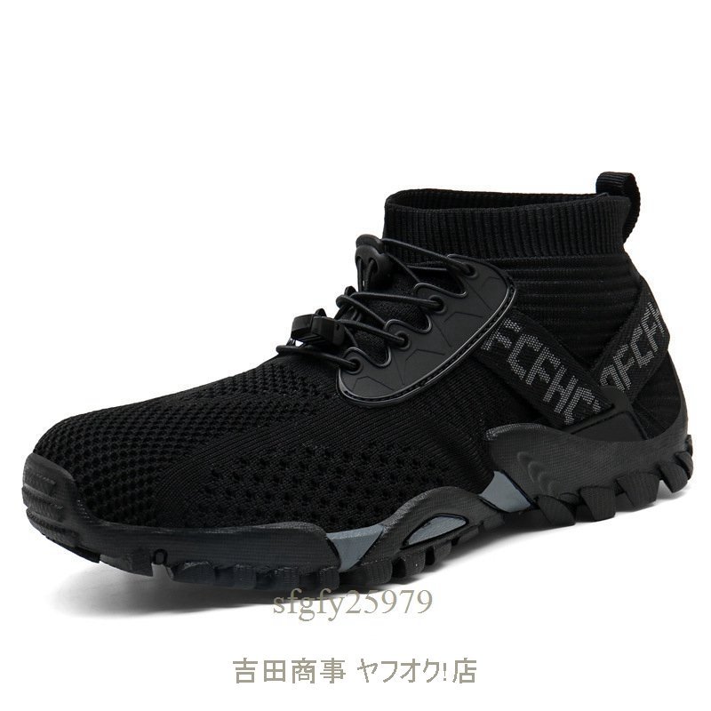 A9891☆新品上質 水陸両用 アクアシューズ マリンシューズ メッシュ ウォーターシューズ メンズ スニーカー 釣り 靴 ブラック 25cm