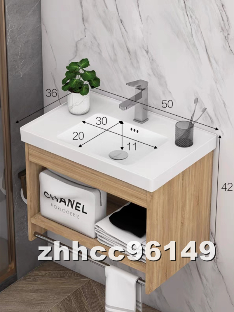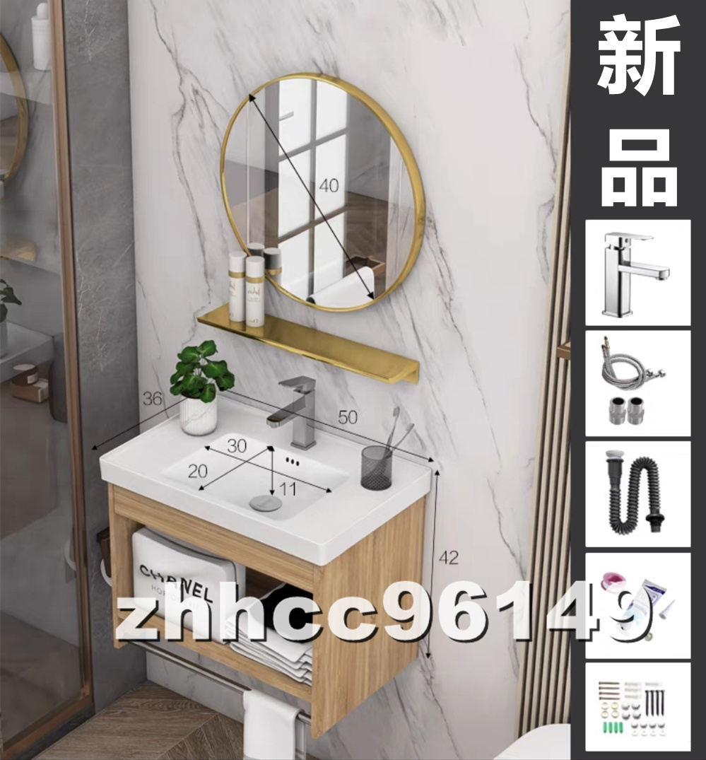 美品 洗面ボウル 壁掛型タイプ 洗面化粧台 洗面台 鏡つき 天然木 家庭用 手洗台 シンク インテリア 蛇口・排水金具付き50cm×36cm×42cm