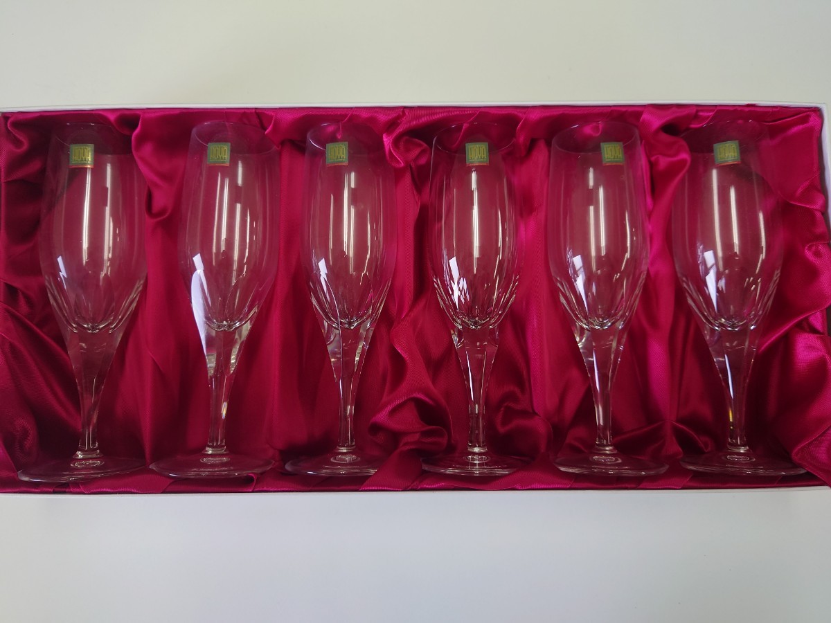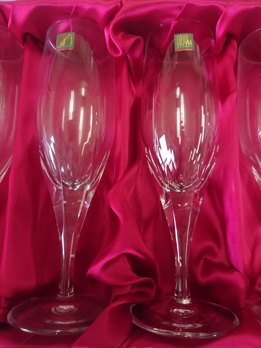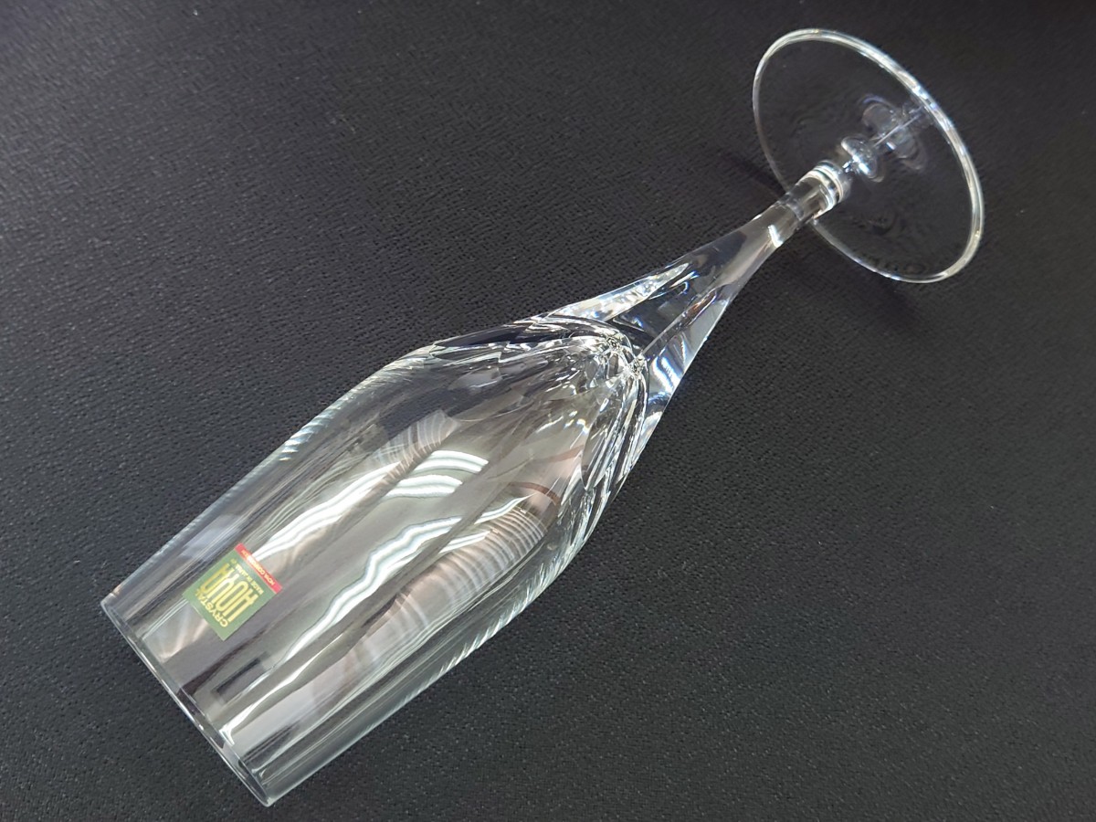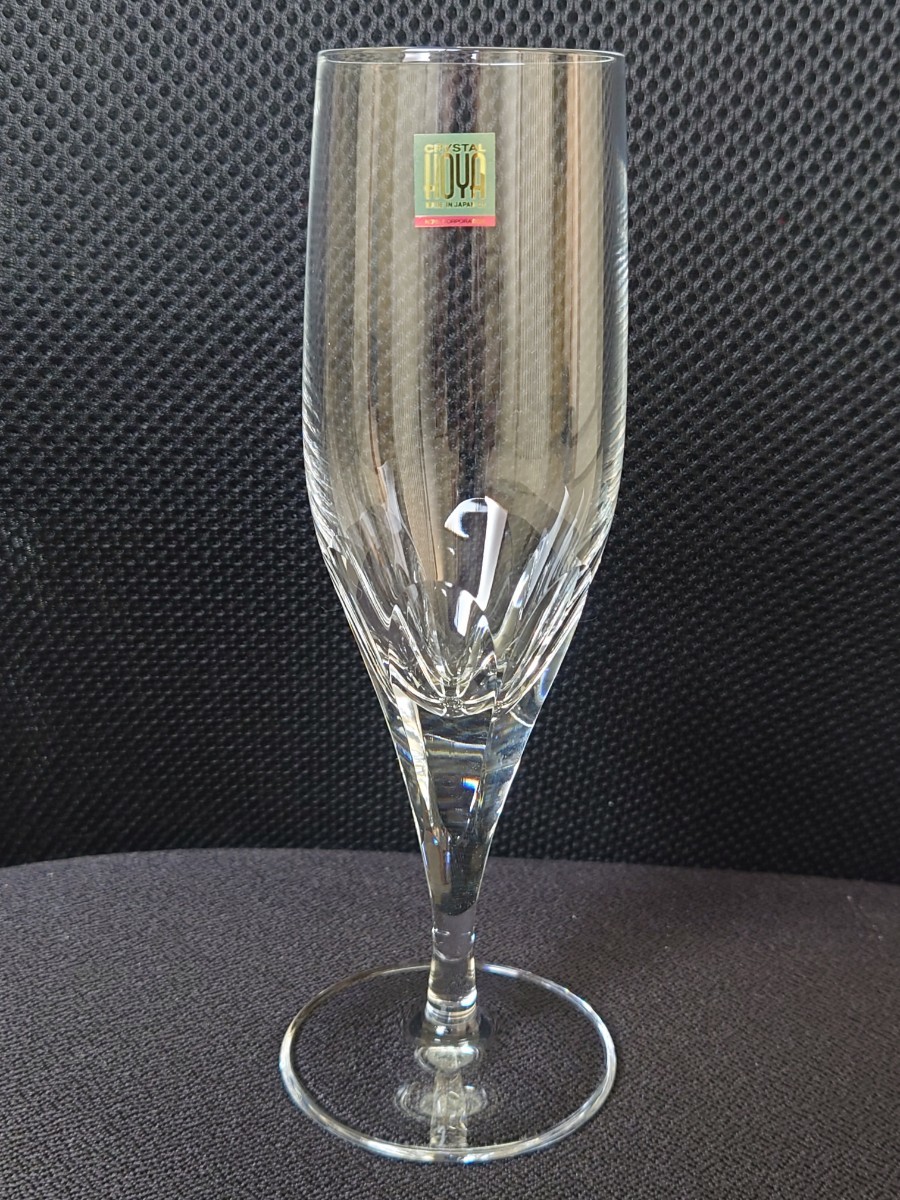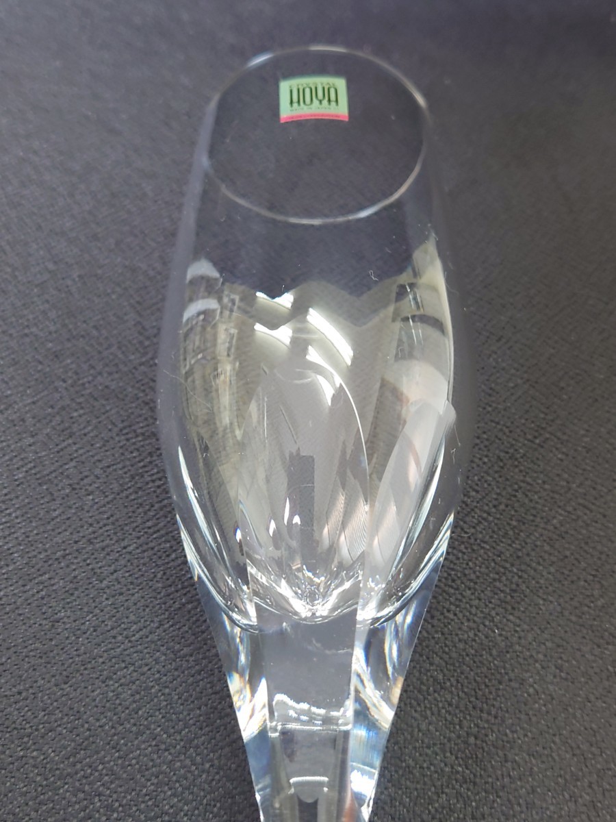 ホヤ(HOYA)高級クリスタルグラス「6面Qカット シャンパンフルートグラス」6客(新品)を御譲り致します。