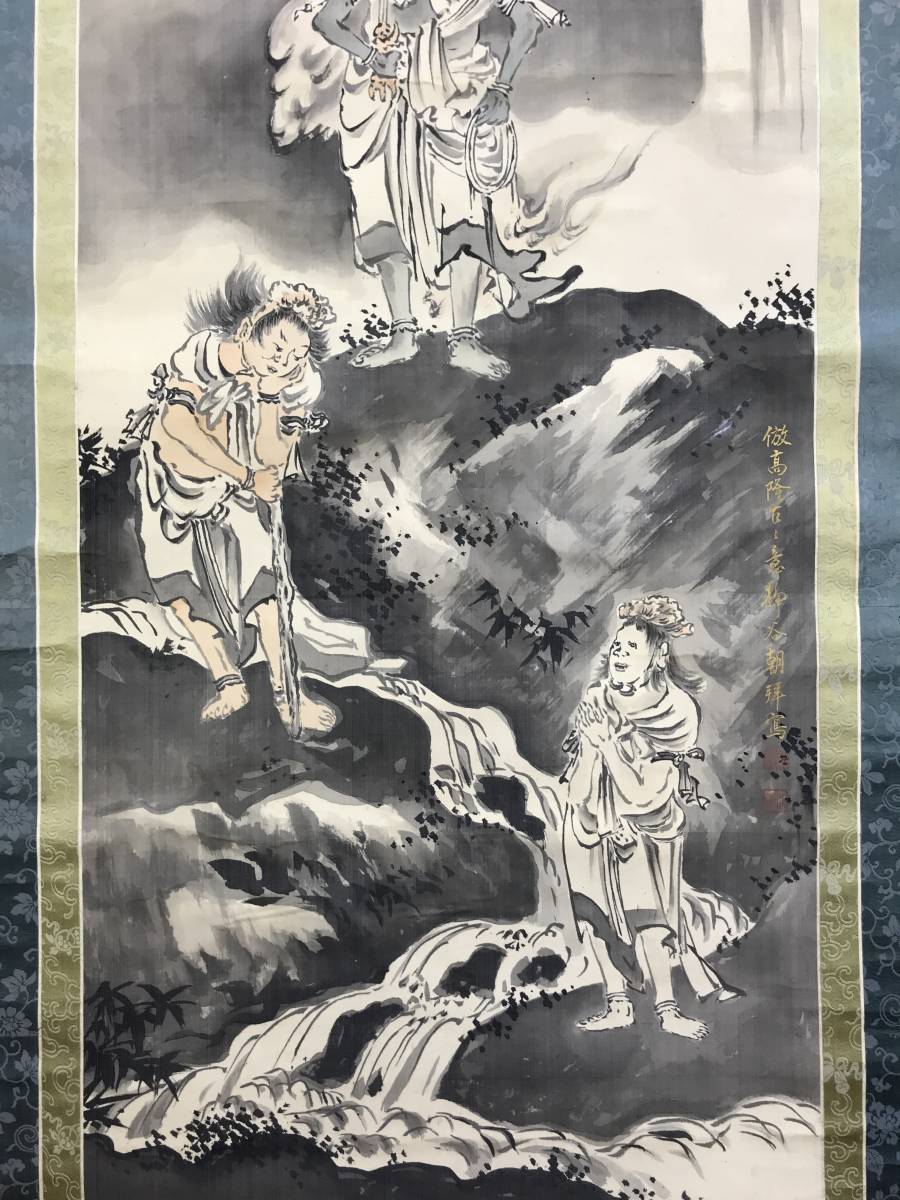 真作/静谷/不動明王図/仏事掛軸/掛軸☆宝船☆AE-434