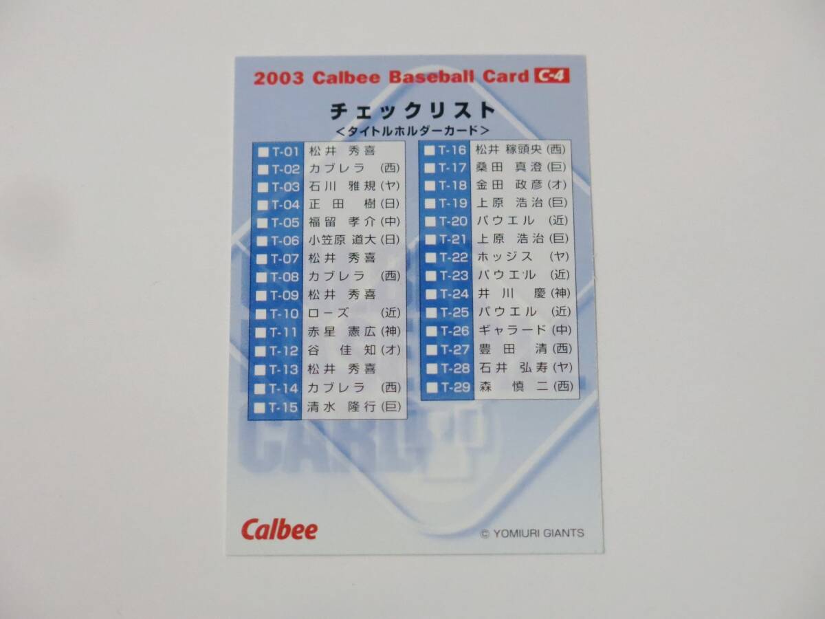 ■2003年 カルビー 野球カード C-4 日本シリーズ 胴上げ チェックリスト■3K249