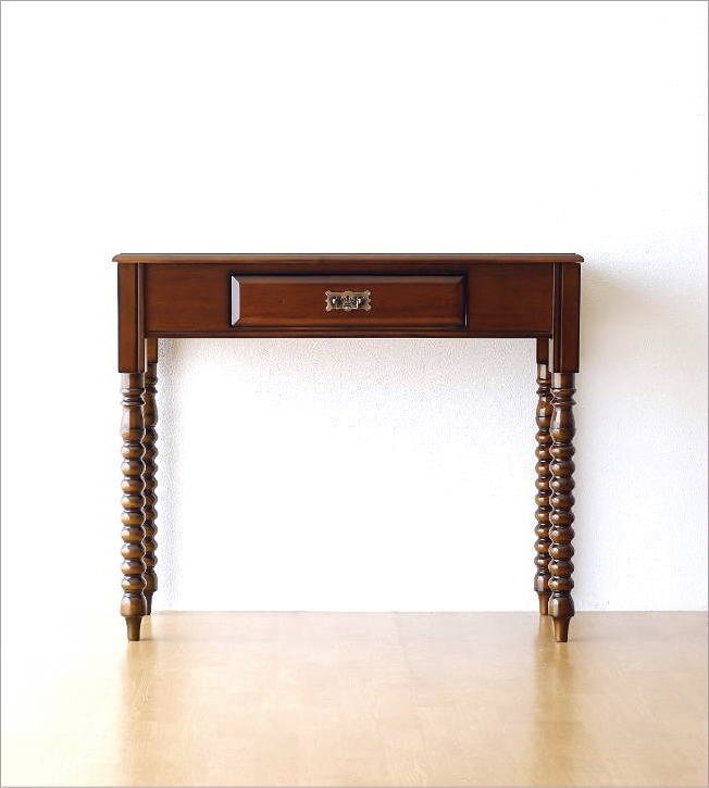 クラシックで上品な雰囲気ただよう ヨーロピアンな家具の世界 一緒に置いたり飾ったりする小物も いっそう上品な印象を与えます こちらは電話台や花台として最適な クリ棒脚が特徴の コンソールテーブルです 小さな引き出しも付いていて 鍵やお財布などの小物入れにも 玄関やリビングのワンポイントで アクセントになりそうなコンソールです 商品名 : マホガニーコンソールテーブル 商品番号 : diz1632 全体のサイズ(cm) : 幅92×奥行40×高さ74 引き出し内寸 : 幅31.5×奥行26.5×深さ7 床から棚下までの高さ : 57.5 材質 : マホガニー 重量 : 14kg 組立状態 : 完成品 生産国 : インドネシア ※小さな擦り傷等はご容赦ください ※脚の傷防止フェルトを貼ってお届けします |