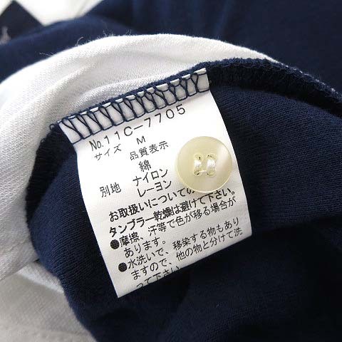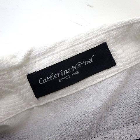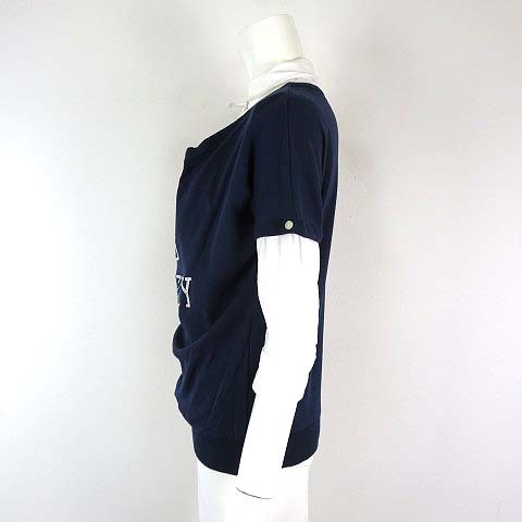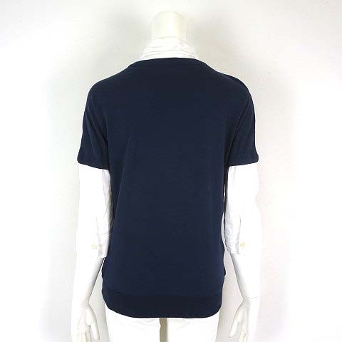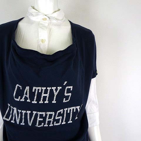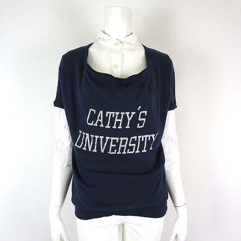キャサリンハーネル Catherine Harnel カットソー シャツ レイヤード風 カレッジ ロゴ ワイヤー襟 ロールアップ 7分袖 M 紺 白