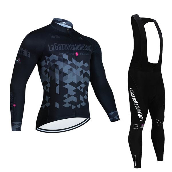 新品、メンズの長袖サイクルジャージとビブ付きパンツのセットです。