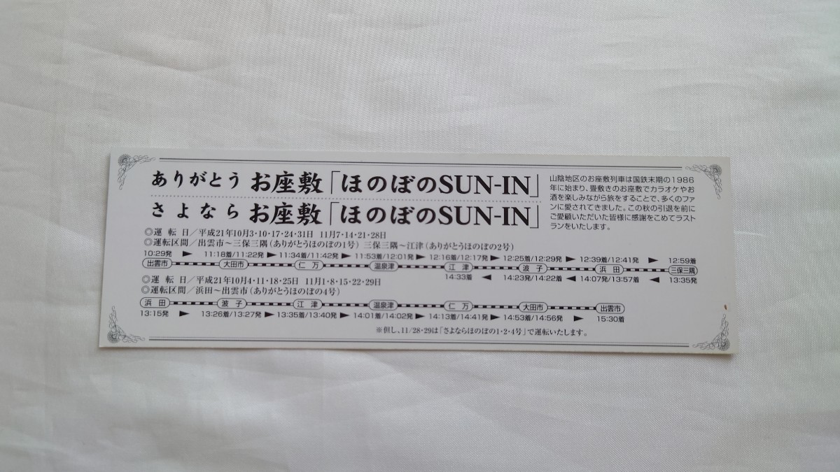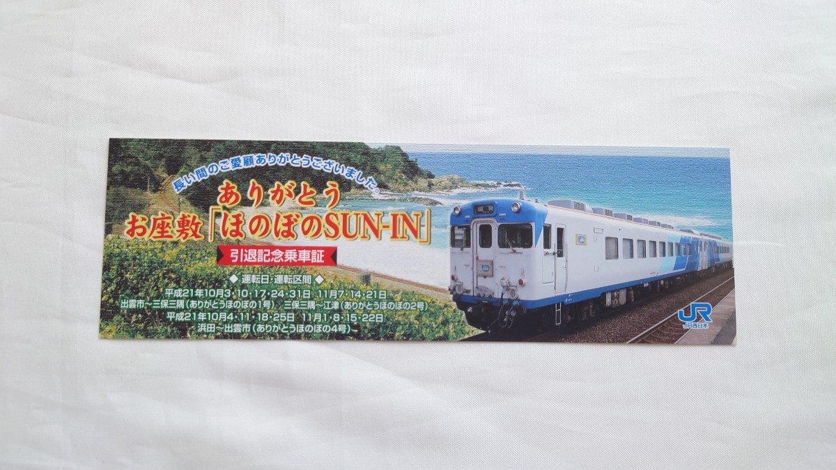 ▼JR西日本▼ありがとうお座敷ほのぼのSUN-IN▼引退記念乗車証