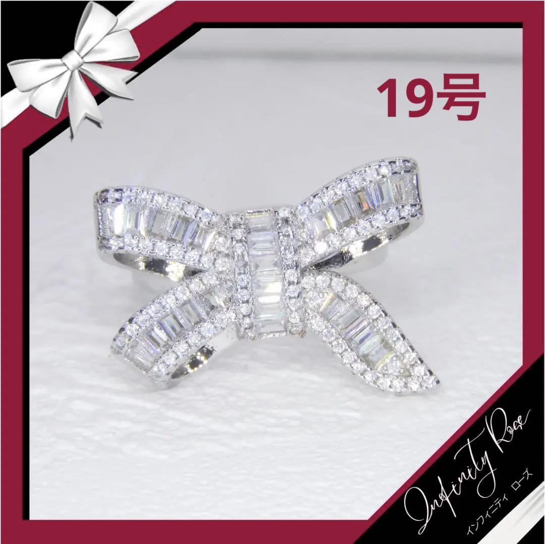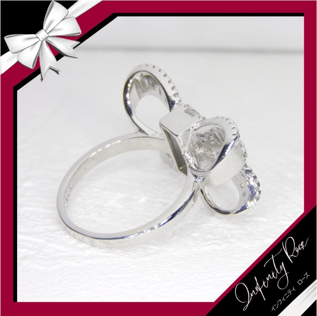 (R046S)19号 輝くクオリティ高い立体リボンリング 高価爪留仕様指輪