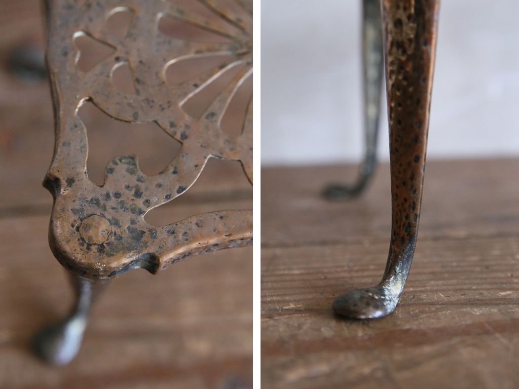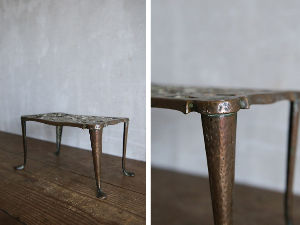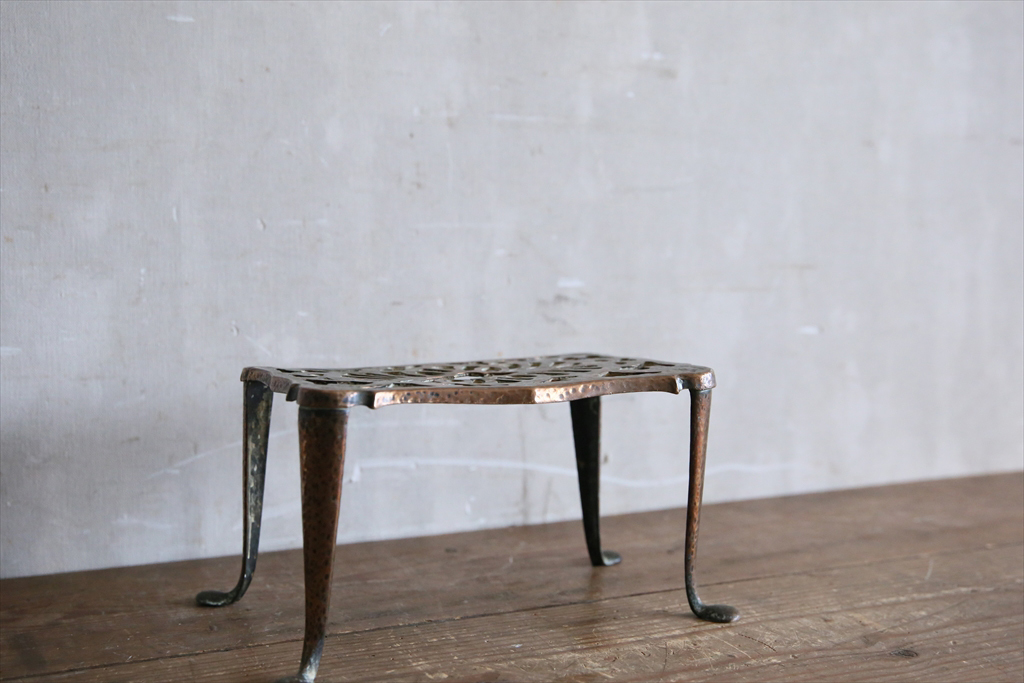 フランスアンティーク◇銅製の古い鍋敷き/トリベット/飾り棚/花台/オブジェ/テーブル/店舗什器ディスプレイ台/フレンチビンテージ雑貨家具
