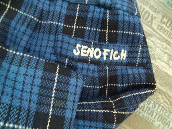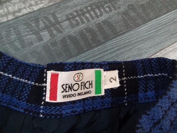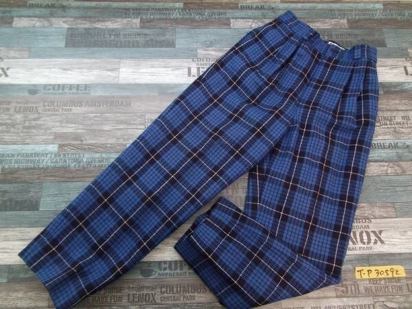 SENOFICH レディース チェック柄 ロゴ刺繍 ウール起毛パンツ 64-70 紺青白 です。