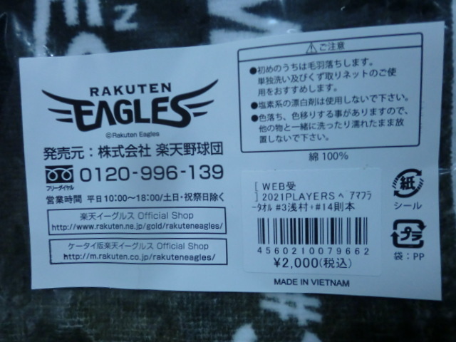 楽天 イーグルス 浅村栄斗 則本昂大 ペアタオルです。