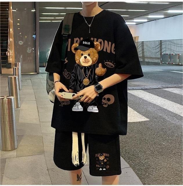 春 夏 秋 おしゃれな半袖セットアップ セットアップ メンズ スウェット 上下 半袖 大きいサイズ ブラック M