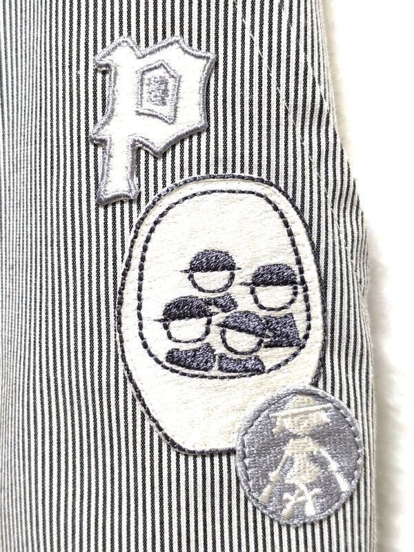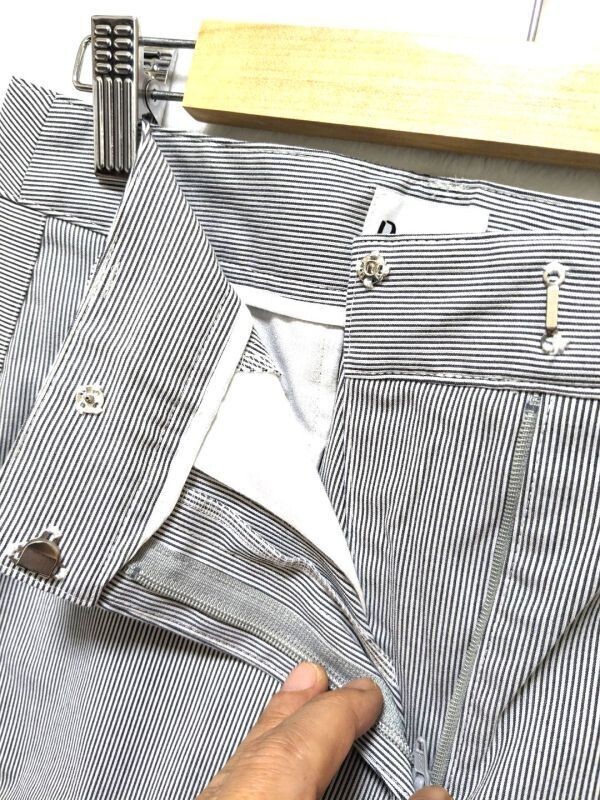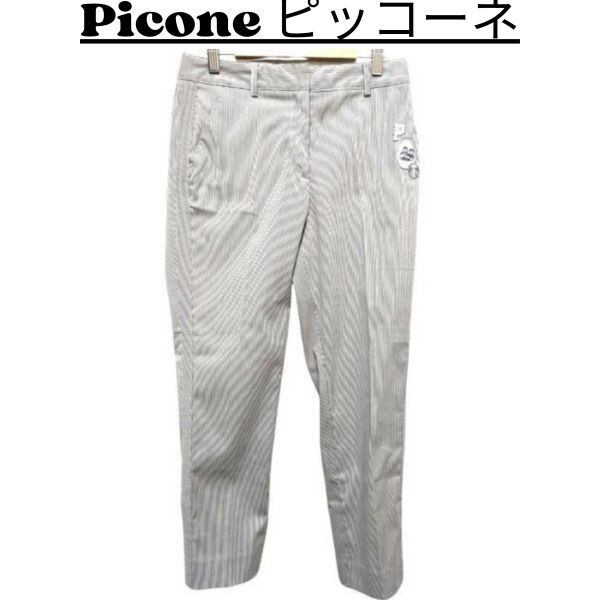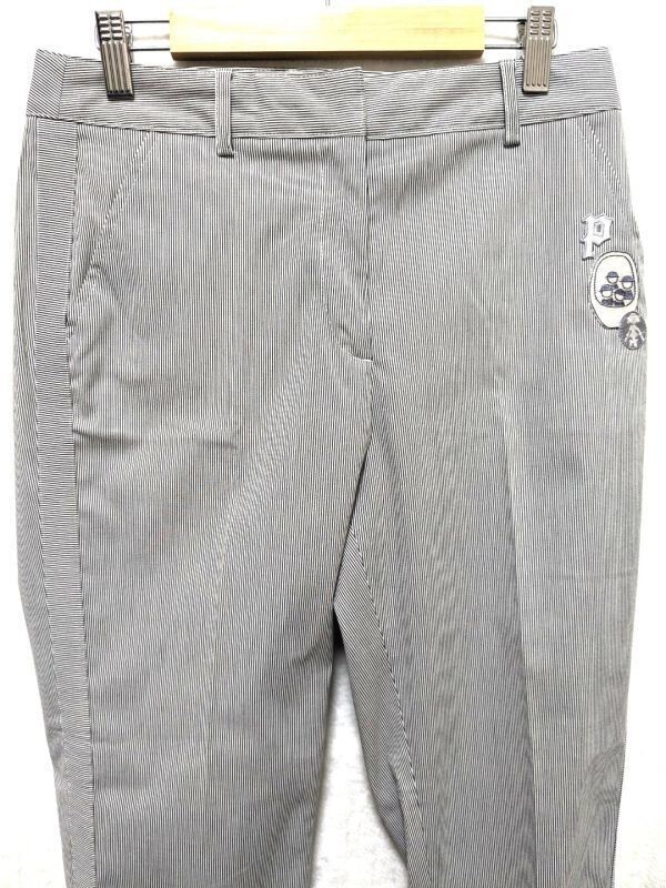 ★美品 Picone ピッコーネ ボトムス レディース ストレートパンツ かわいい アップリケ カジュアル 白&紺(縦ストライプ柄) 38 / M nr1-041