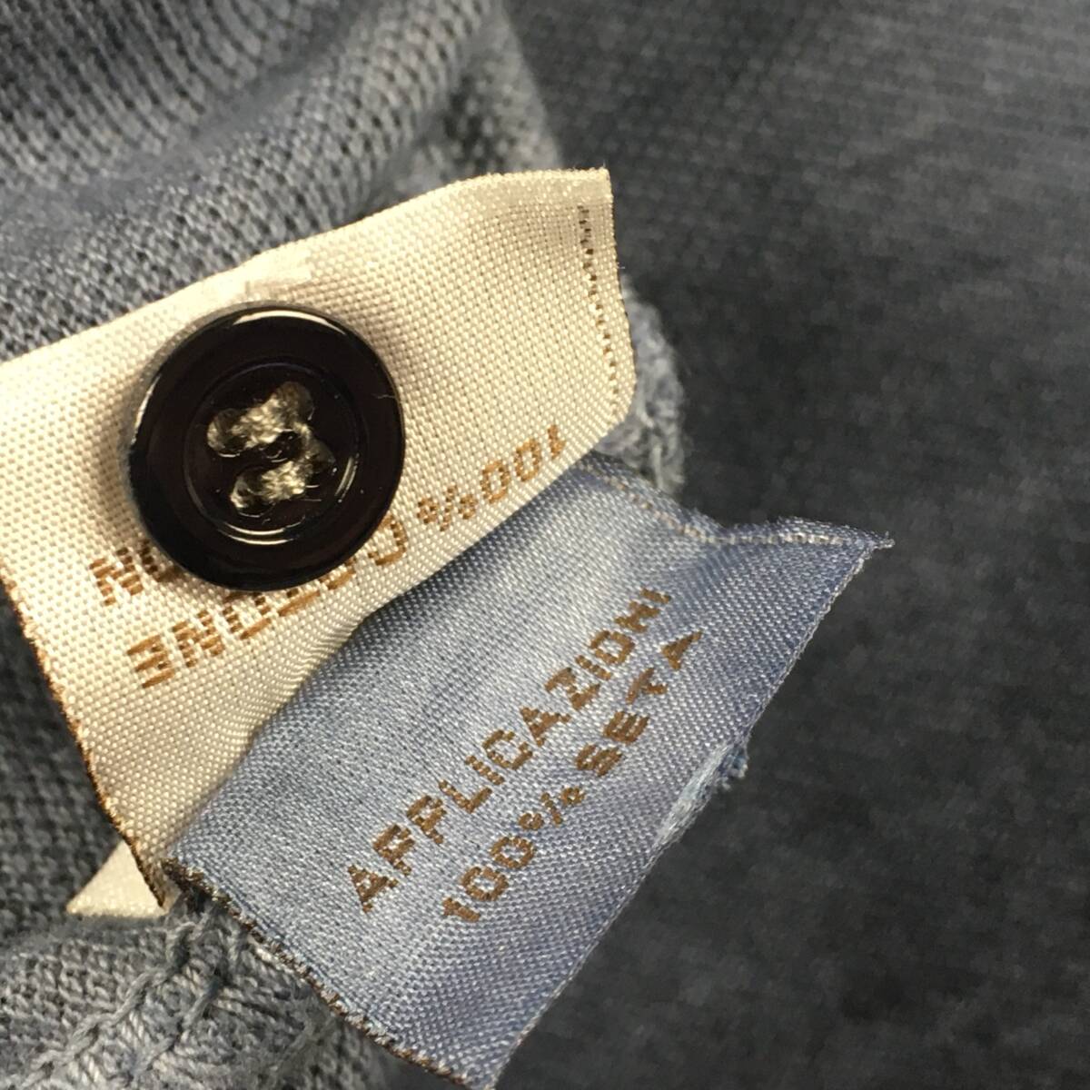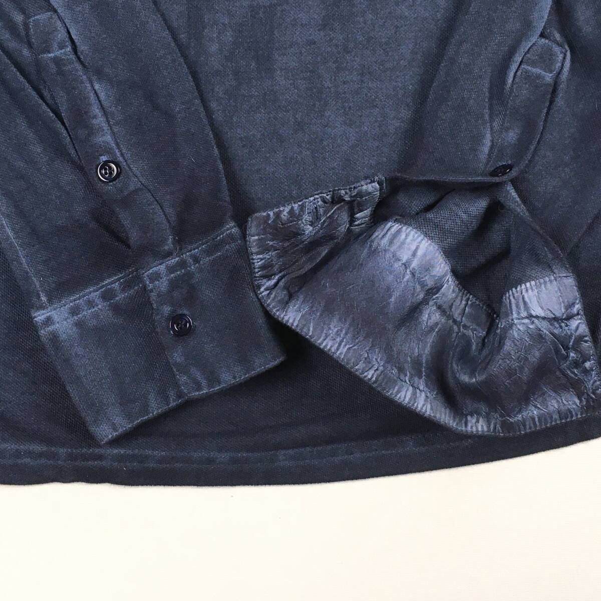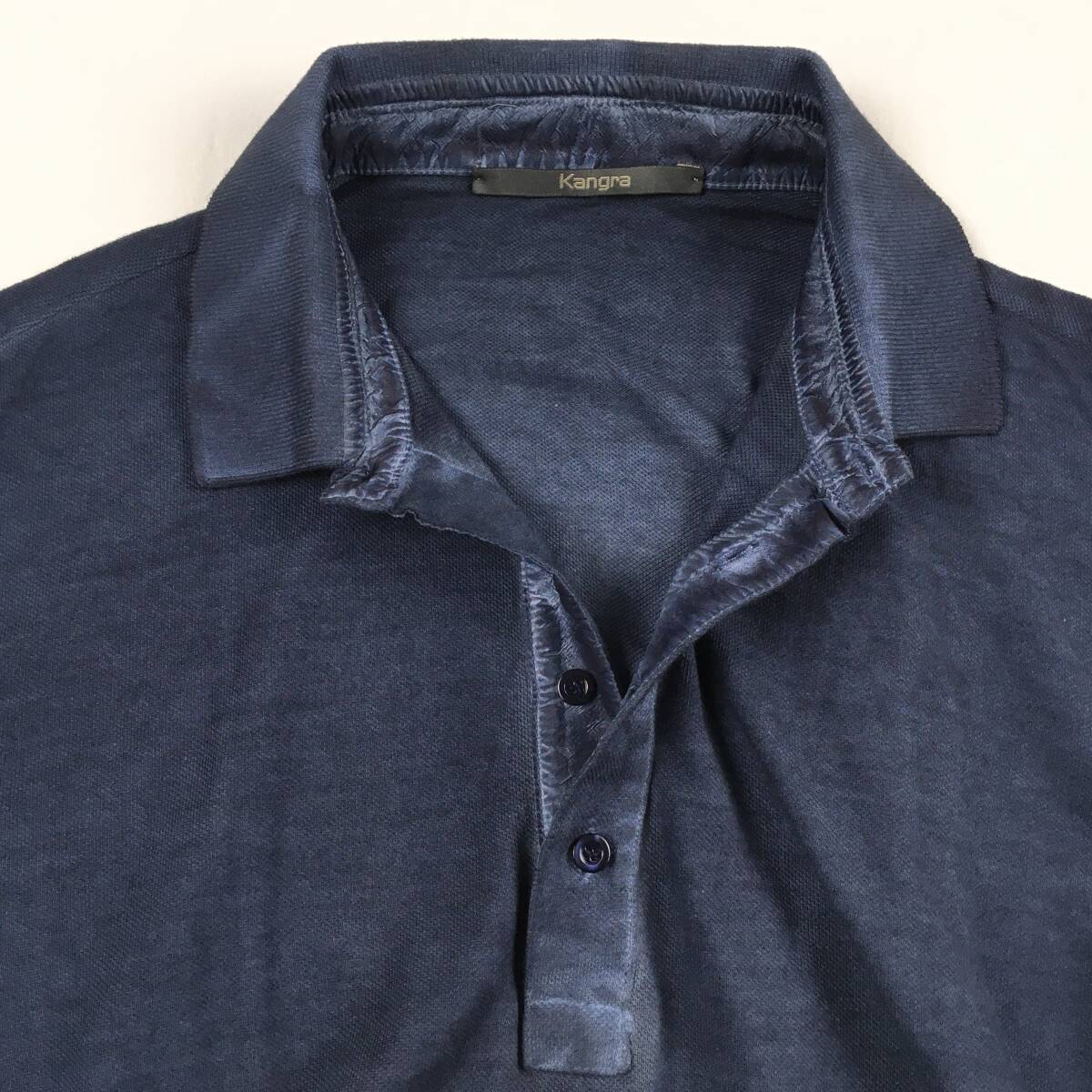 ■1点物 3.0万【Kangra/カングラ】襟元シルク仕立て/ガーメントダイ 極上・大人の長袖ポロ 46 細身/ネイビー ポロシャツ 鹿の子