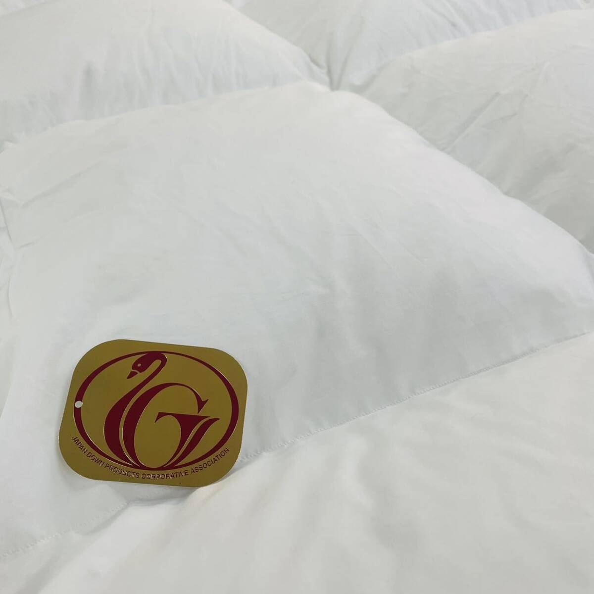 日本の羽毛工場で、羽毛の洗浄、乾燥、パワーアップ加工を施し、一枚一枚丁寧に手作業で吹き込んだ羽毛布団。