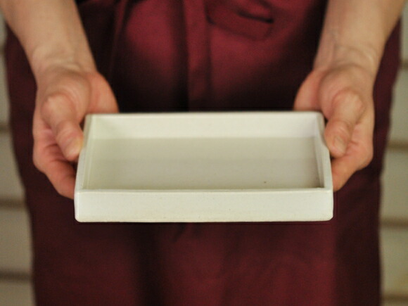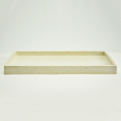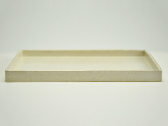 苔玉皿や花器として使用できる水盤 白 長角手造り水石 6号 幅約19cm×奥行約13cm×高さ約2~3cm