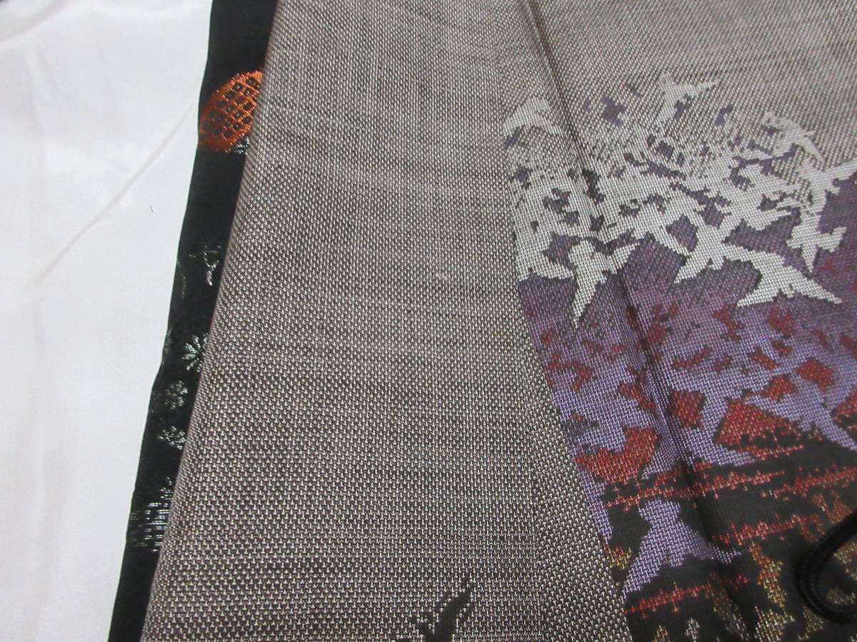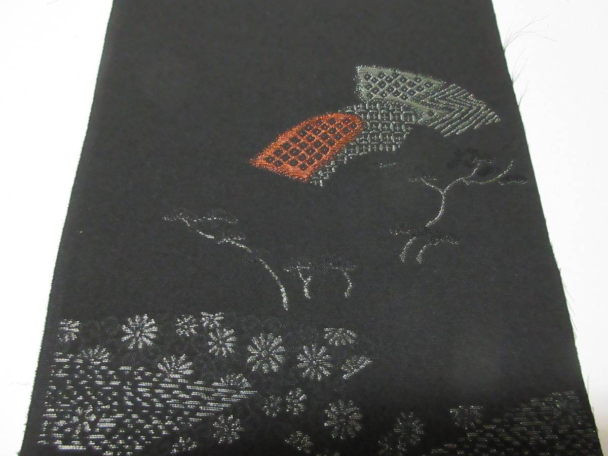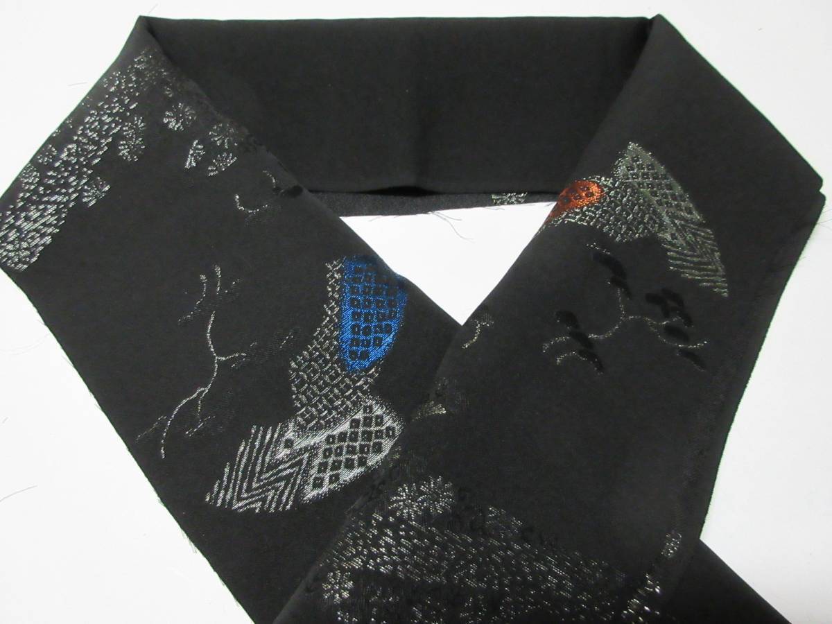 ◇ 正絹 壽光織 縫取り 半衿用 柄のハギレ 細工つるし飾り 黒地 №26 17960