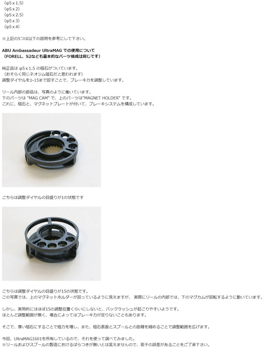 そこで、厚い磁石にすることで磁力を増し、また、磁石表面とスプールとの距離を縮めることで調整範囲を広げます。
