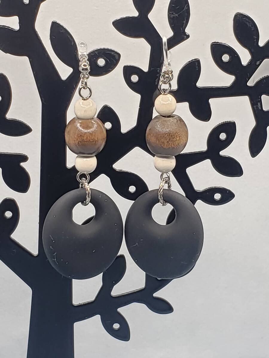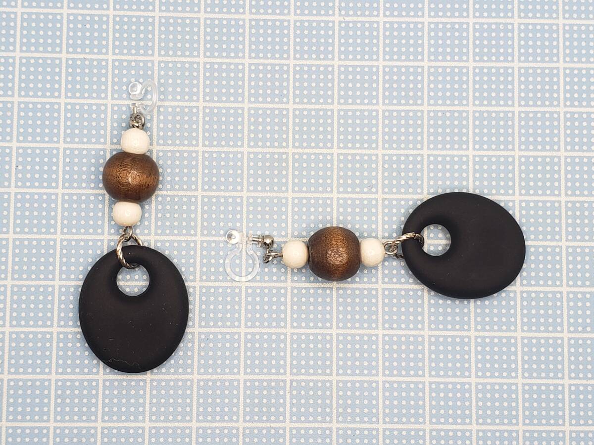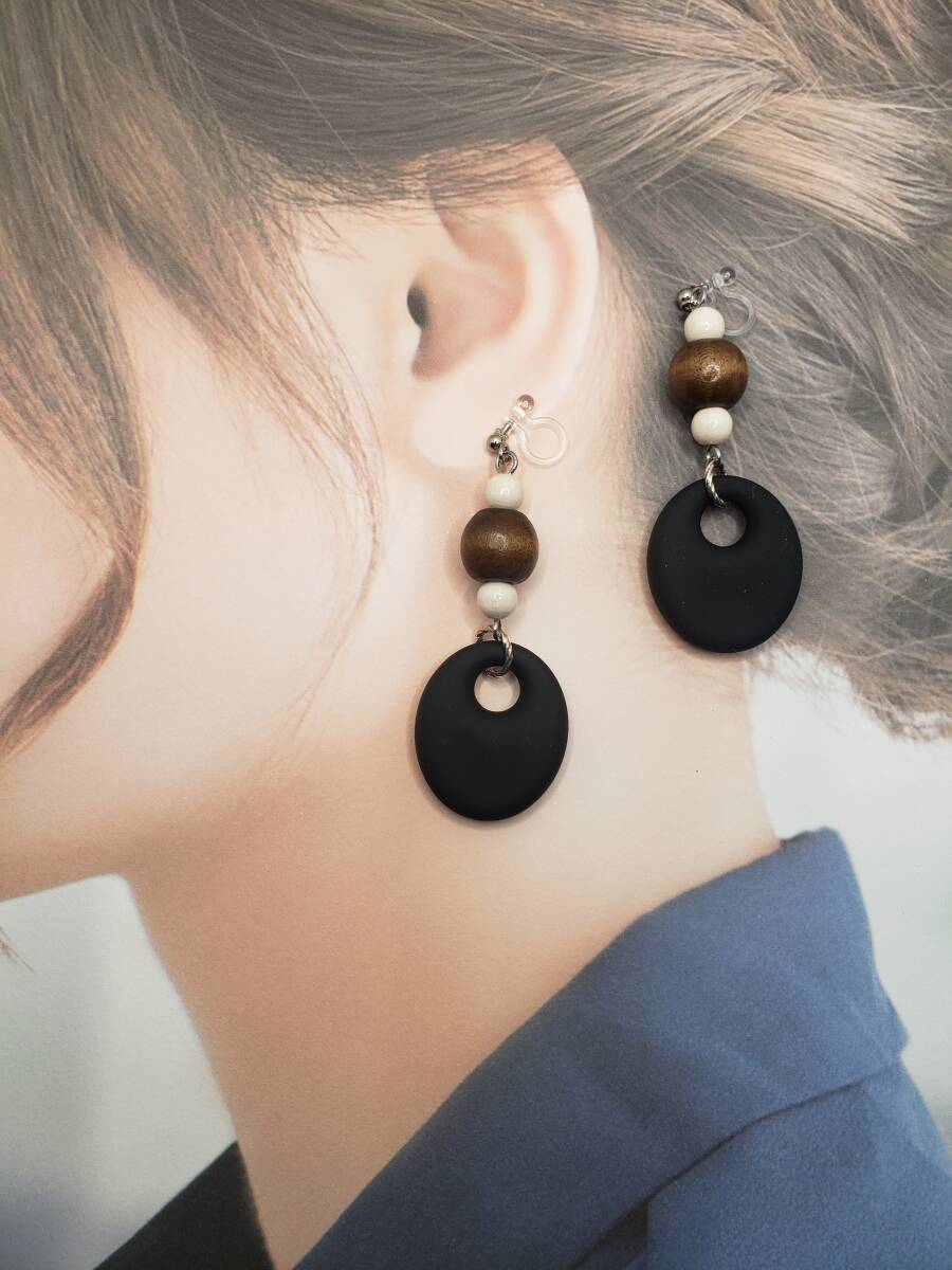 ★ハンドメイド イヤリングorピアス C916 樹脂フック・クリップ式イヤリング金具など変更無料 ウッドビーズ ノンホールピアス★