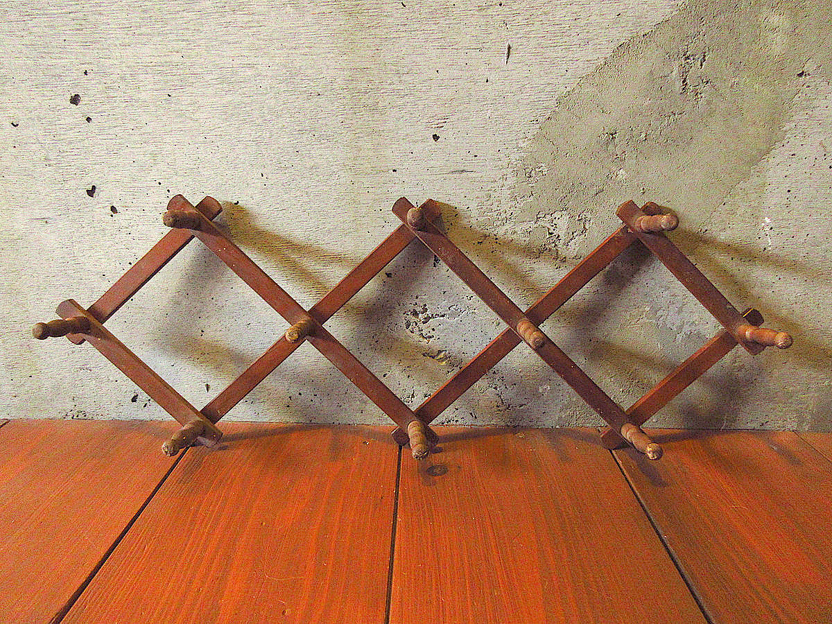 ビンテージ●ウッドアコーディオン壁掛けフック●240302k5-otclct木製インテリア雑貨ウォールフック