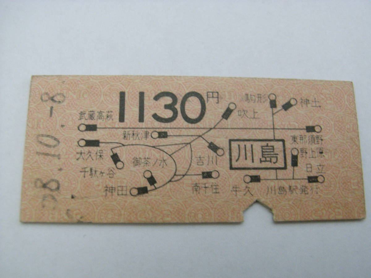 水戸線 川島から1130円 昭和58年10月8日 川島駅発行