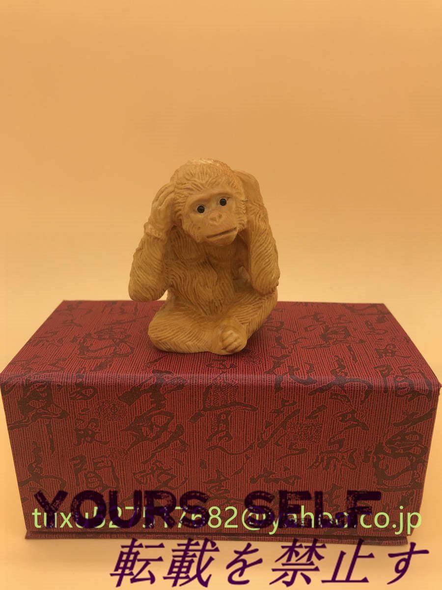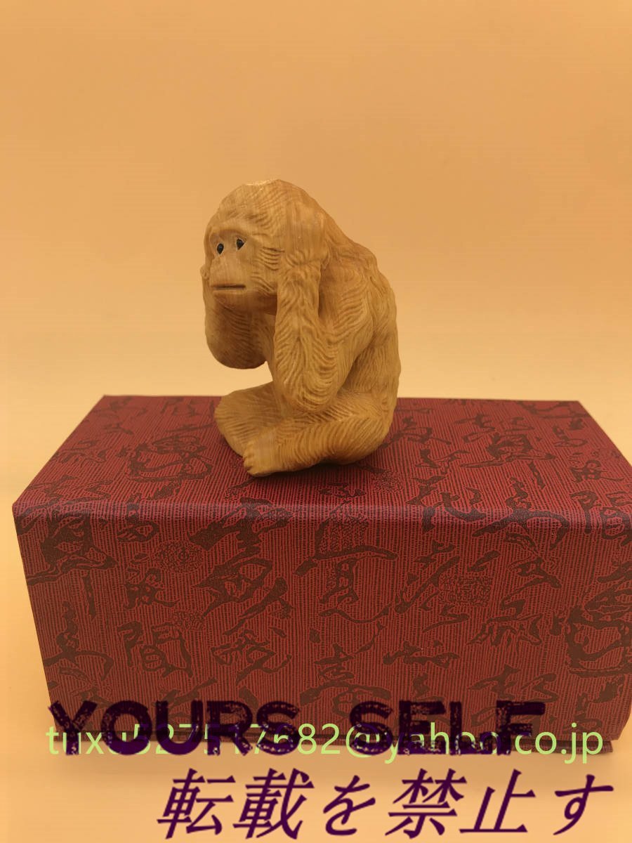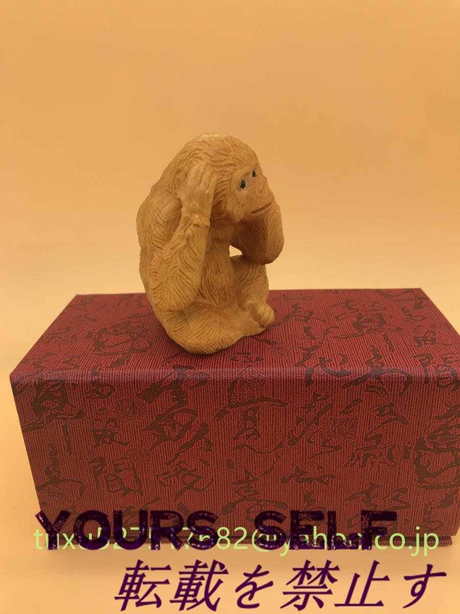 極上質 十二支 猿 木彫品 木製 彫刻品 職人手作り 細密彫刻