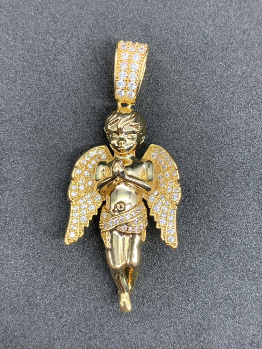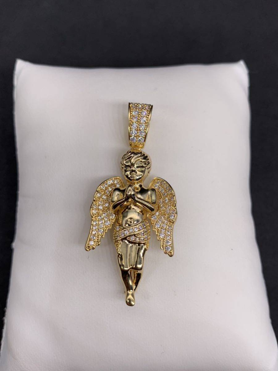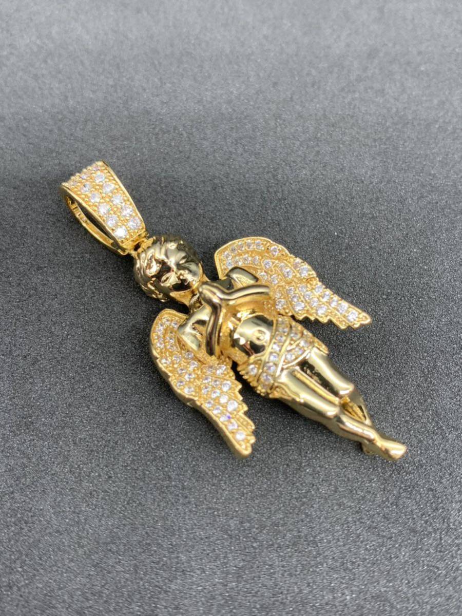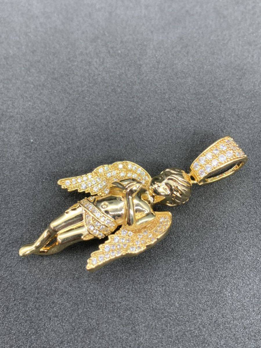 ゴールドのボディに羽などに散りばめられたジルコニアがが輝いてとても美しいデザインです(^^)/