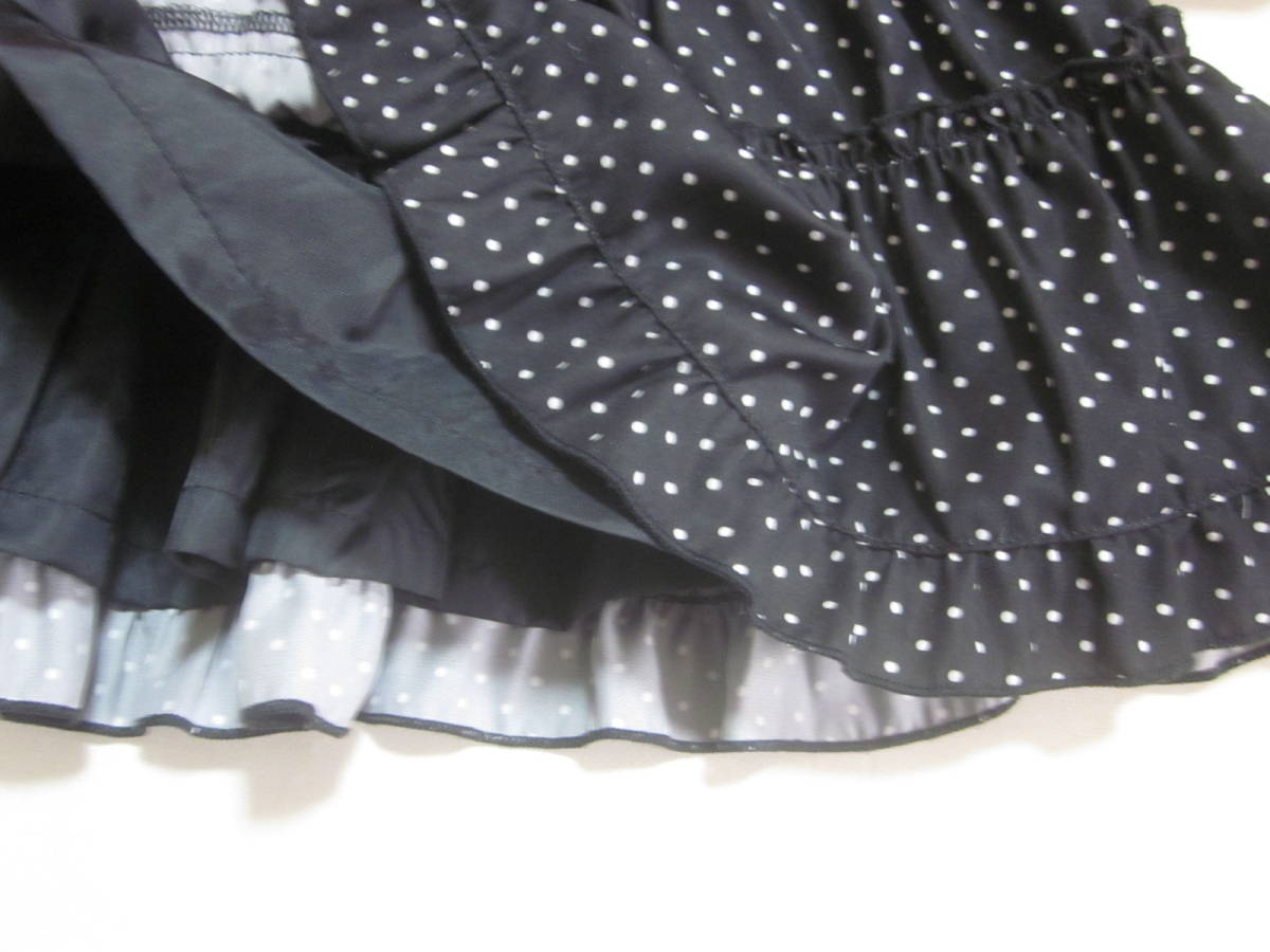 ●スカート 黒×白ドット ポリエステル ウエストは調節可能ゴム入り