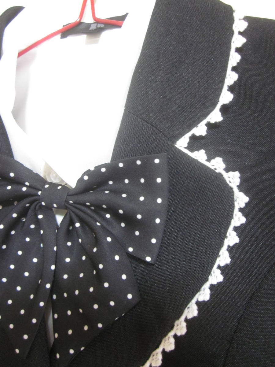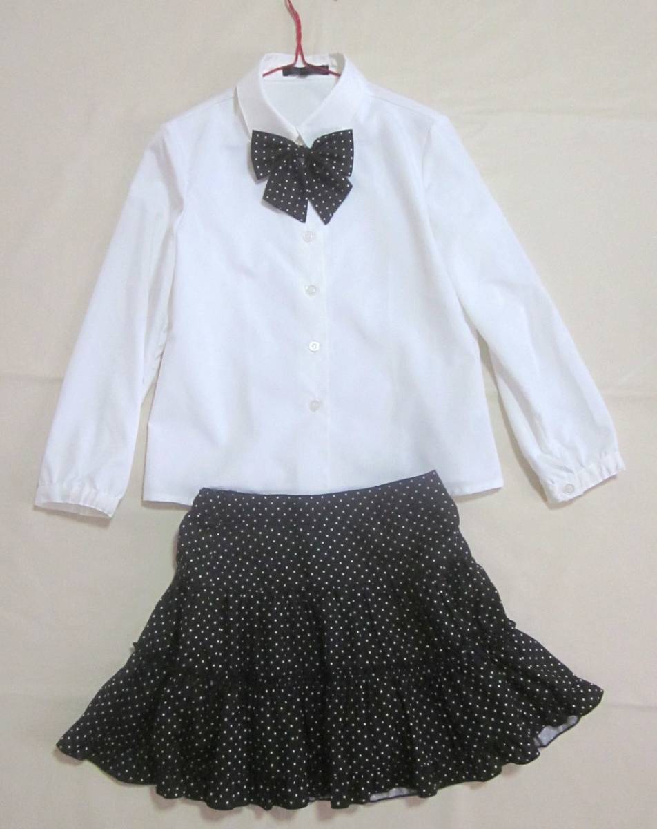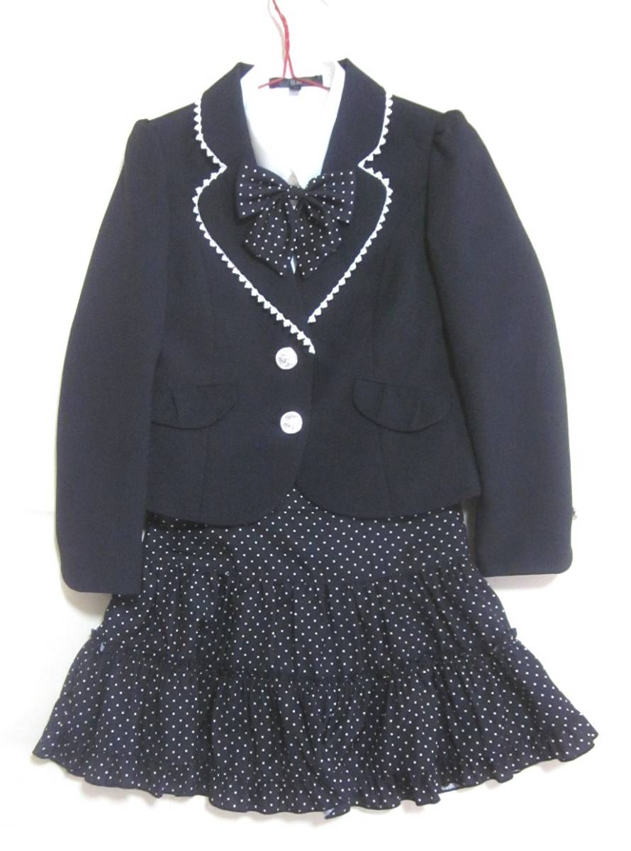 BB 130cm 女の子 フォーマル スーツ 上下 4点 セットアップ ジャケット スカート ブラウス リボン 黒 セレモニー 発表会 入学式 6517