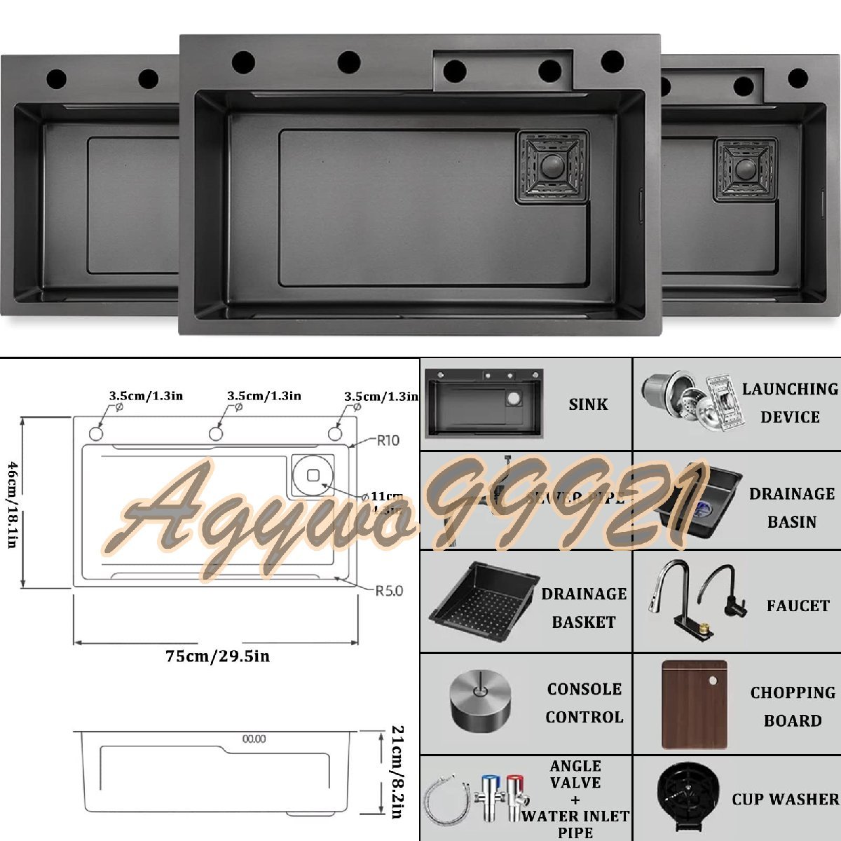 ??【製品アドバンテージ】?ナノコーティングは、耐油性、お手入れが簡単、耐熱性があり、色あせすることはありません?コンパクトなシングルボウルデザインで、小さなスペースに最適なソリューションです?耐熱性、耐擦傷性、耐汚染性、耐へこみ性、他のシンクよりも強力で耐久性があります?メンテナンスを容易にするためにコーナーを曲げる?標準の排水管は、あらゆるごみ処理装置に適しています??【注】流し台を正しく設置するために、事前にベースキャビネットの開口部のサイズを測定してください。??【商品仕様】-素材: 304 ステンレス鋼-色: 黒-サイズ:60x45x21cm/23.6x17.7x8.2in65x45x21cm/25.5x17.7x8.2in68x45x21cm/26.7x17.7x8.2in72x45x21cm/28.3x17.7x8.2in75x45x21cm/29.5x17.7x8.2in-ボウルの深さ: 21 cm/8.2 inch-取り付けタイプ: ドロップインまたはアンダーマウント??【暖かいリマインダーにご注意ください】?販売リストについて---------私たちは台所の流し台のみを販売しており、他の写真の内容は含まれていません。?色について---------カメラ、撮影灯、パソコンの設定により、実際の色が写真と異なる場合があります。実際の製品を参照してくださいが、これは品質の問題ではありません。?サイズについて---------手動測定データには若干のずれがありますのでご了承ください。 1?2cmのずれがある場合がありますので、実際の商品をご参照ください。ご理解ください。?商品について---------購入前にサイズと色をご確認ください。似たような人気商品がたくさんありますので、クリックして当店に足を運んでみてください。あなたのスタイルやニーズに合う商品は他にもたくさんあります。?サービスについて--------ご購入にご満足いただければ幸いです。カスタマーサービスについてご不明な点がございましたら、お気軽にお問い合わせください。よろしくお願いいたします。