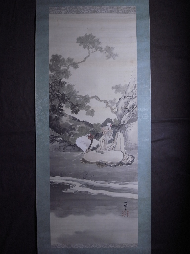 倉田松濤『寿老人』掛軸〔絹本肉筆真作〕でございます。