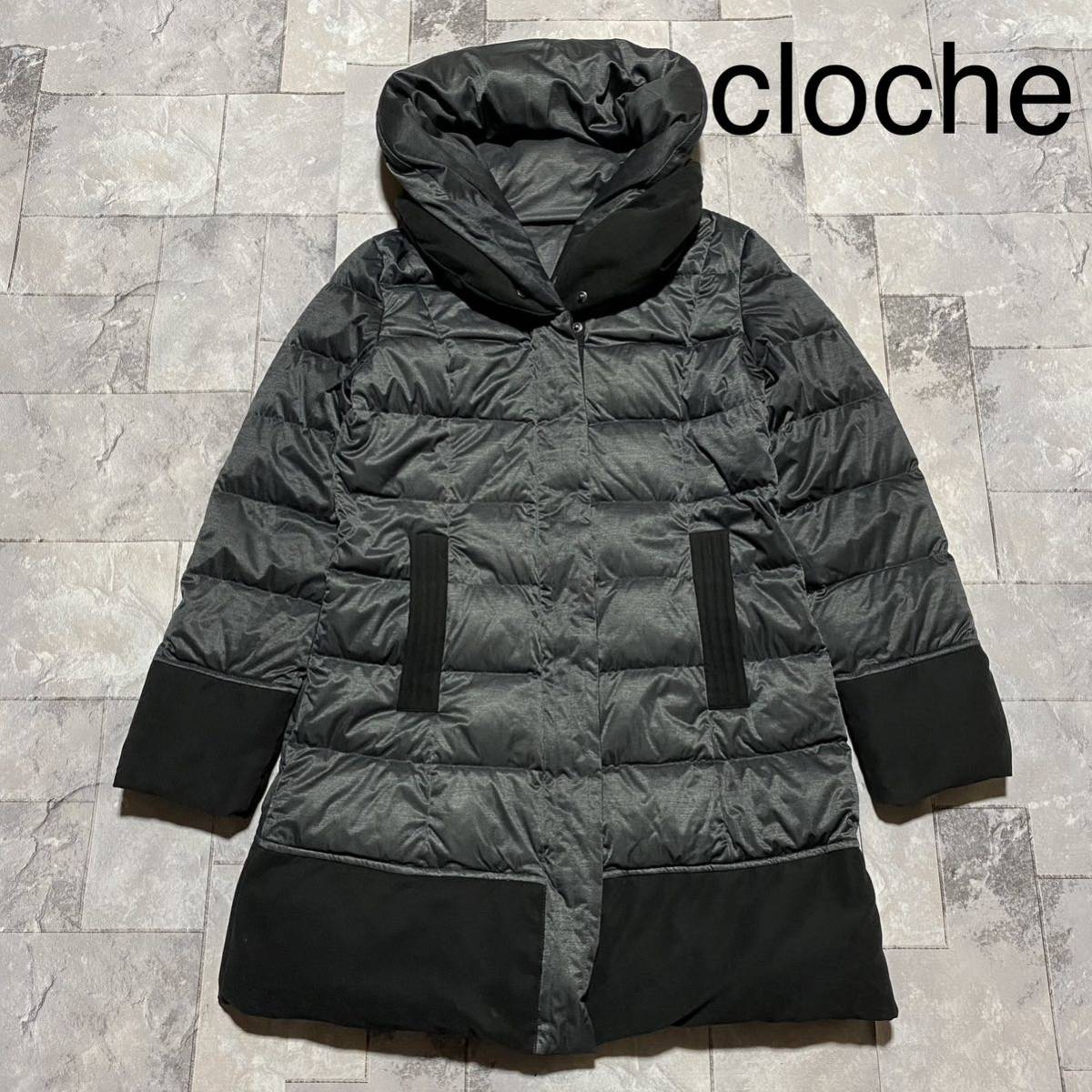 cloche クロシェ ダウンジャケット ダウンコート ナイロン Aライン 定価23000円程 グレー ブラック レディース サイズ2(M)玉FS1204