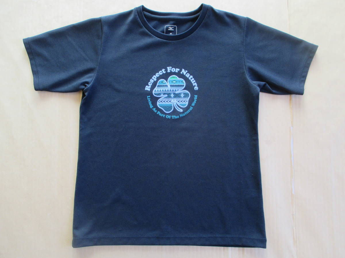 送料210円 MIZUNO レディース 半袖 四つ葉のクローバー プリント Tシャツ 紺 S 身幅42.5cm ミズノ スポーツ カットソー