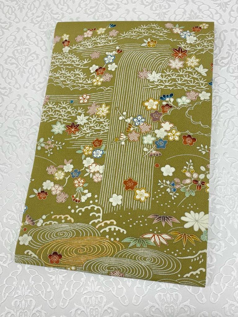 京友禅 御所解文様 手刺繍 九寸名古屋帯 金駒 鬼しぼちりめん 正絹