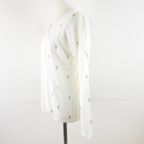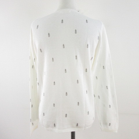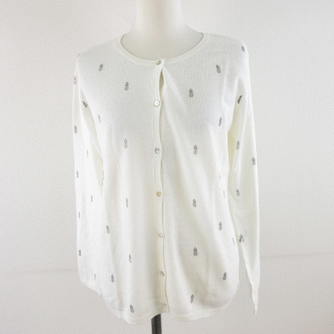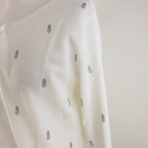 season ニットカーディガン 長袖 パイナップル オフホワイト 白 S *A489 レディース