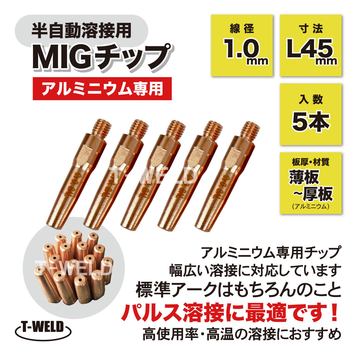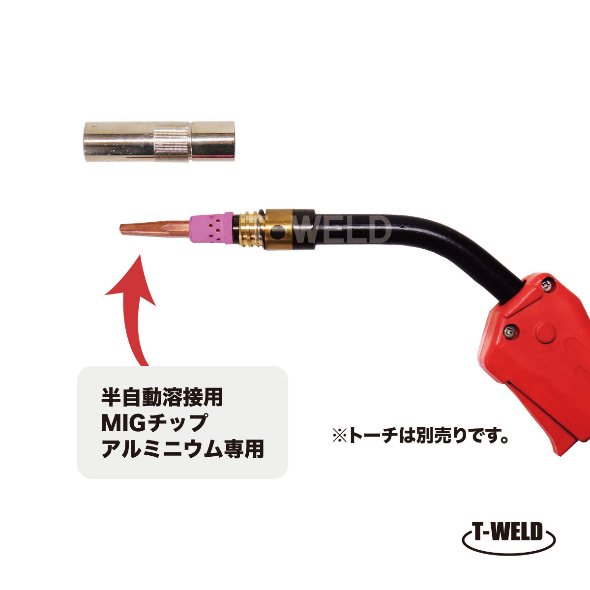 アルミニウム専用チップで、幅広い溶接に対応しています。