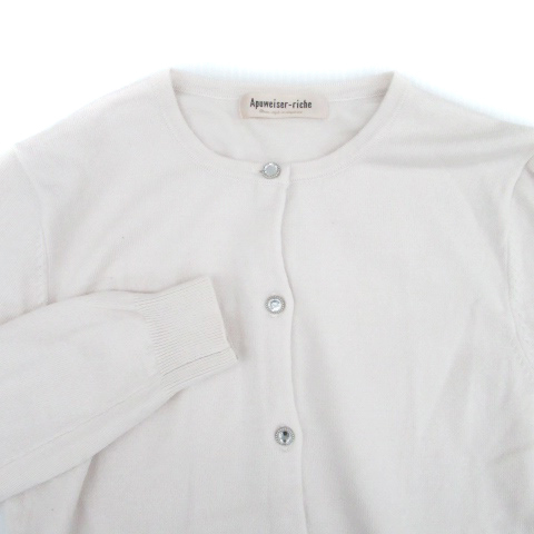 アプワイザーリッシェ Apuweiser-riche ニットカーディガン ラウンドネック 無地 ラインストーン 2 ピンク /HO36 レディース