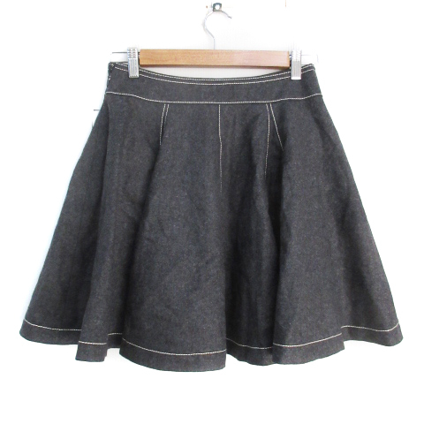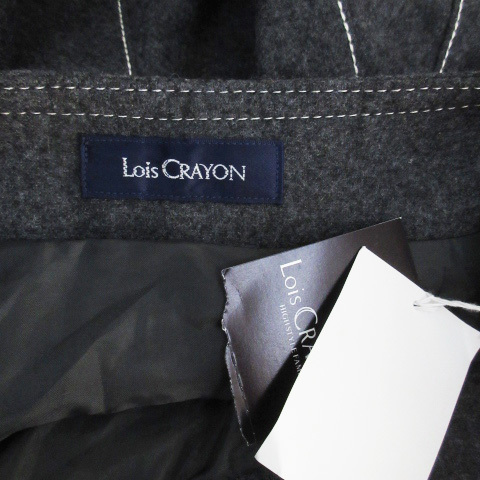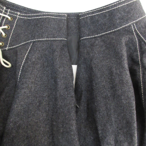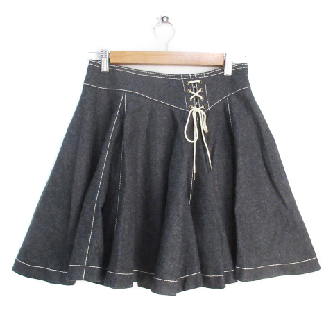 未使用品 ロイスクレヨン Lois CRAYON フレアスカート ミニ丈 ウール レースアップ リボン M 杢グレー 白 ホワイト /FF54 レディース