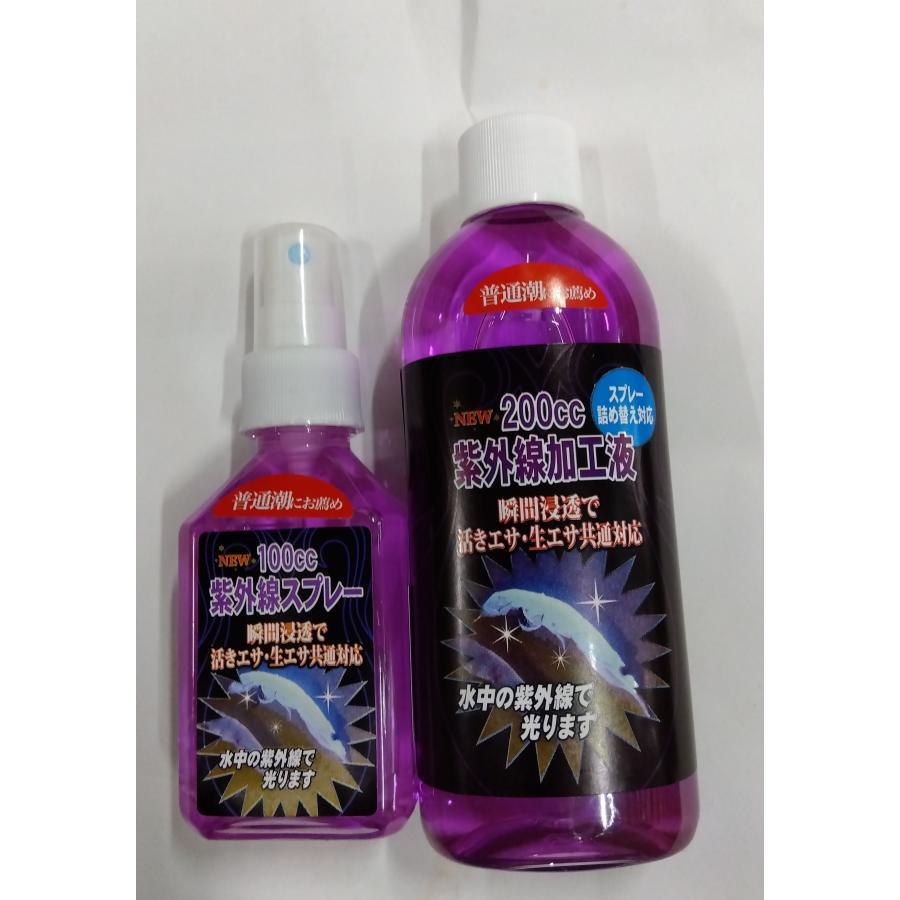 | ★商品説明 | 紫外線本舗 蛍光紫外線(スプレータイプ)100cc+蛍光紫外線加工液パープル200ccのセット*それぞれ単体で使用可能ですが、必要に応じてスプレータイプへの詰め替えとしてもご利用ください。紫外線本舗 蛍光紫外線(スプレータイプ)100cc〇活きエサ(イワシ・イソメ等)・生エサ(イカ・サバ等)にスプレーすると瞬間浸透して水中の紫外線に反応して光ります。〇潮色・天候等により各色を使い分けていただけますとより効果的です。〇エサの種類により、紫外線加工が出来ないものがありますのでご了承ください。〇釣りエサ専用です。〇開封後はなるべくお早めにご使用ください。〇内容量:100cc(スプレータイプ)蛍光紫外線加工液パープル200cc● 普通潮にオススメ!★使い方はとっても簡単!生エサに約30分浸けることにより、水中の紫外線に反応して光ります。●内容量:200cc ●カラー:パープル ★複数在庫あります。 |