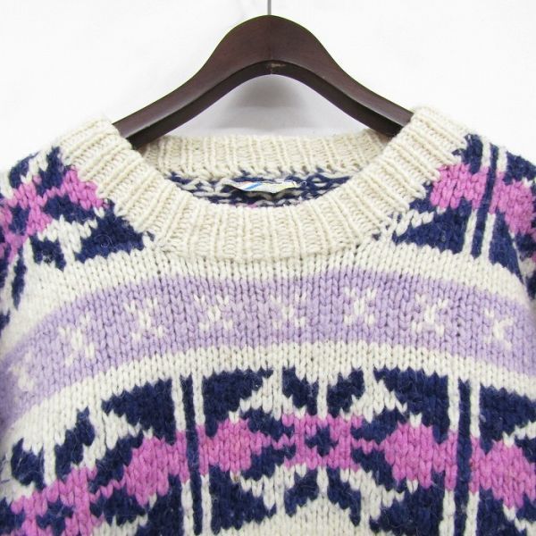 エクアドル製 サイズ? 厚手 総柄 ウール ニット セーター マルチカラー ハンドメイド プルオーバー マルチカラー 古着 ビンテージ 3JA1908