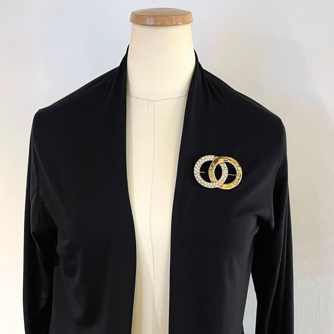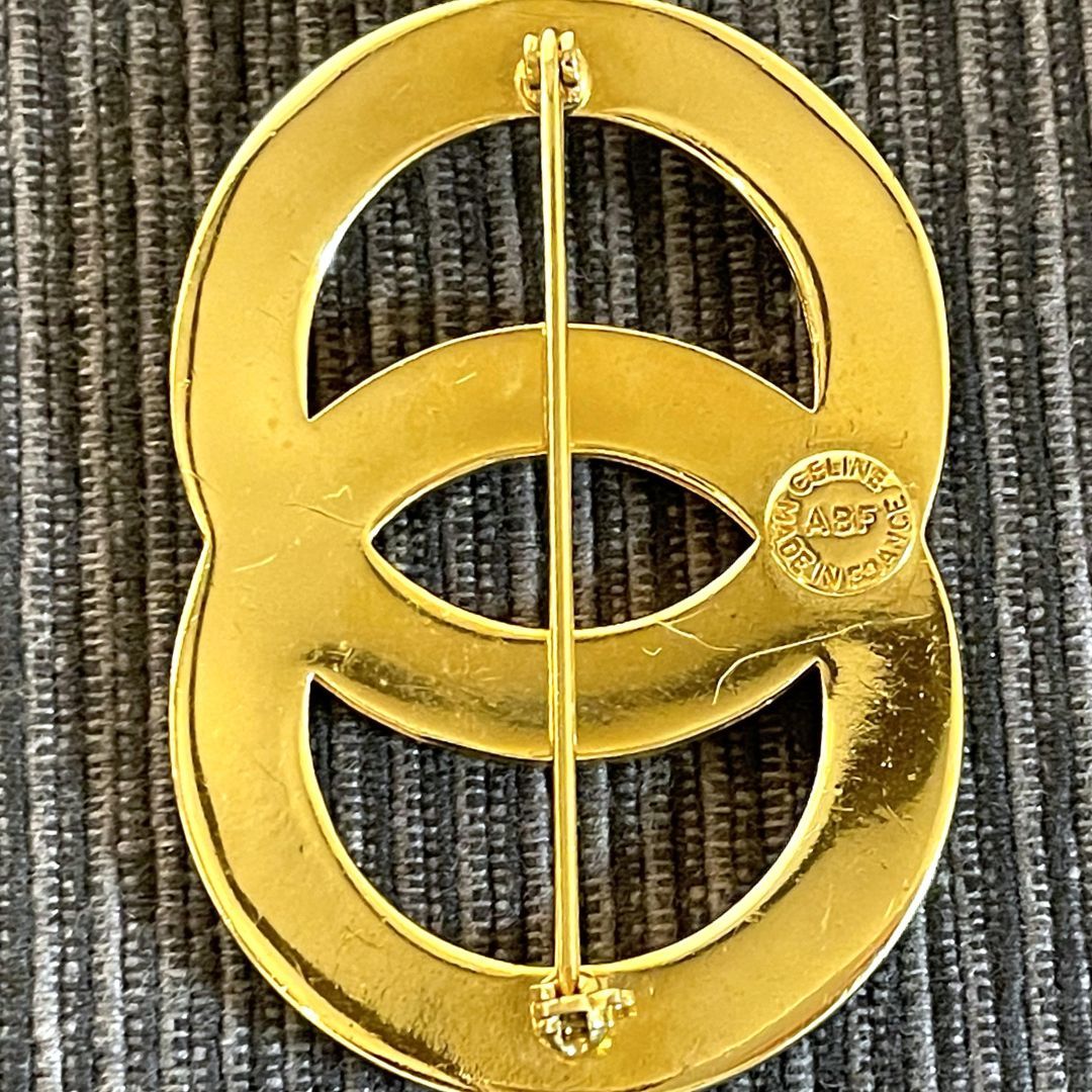 【良品】CELINE セリーヌ ブローチ ロゴモチーフ ラインストーン ゴールド 金 アクセサリー ハレの日 ジャケット コート 入卒園式