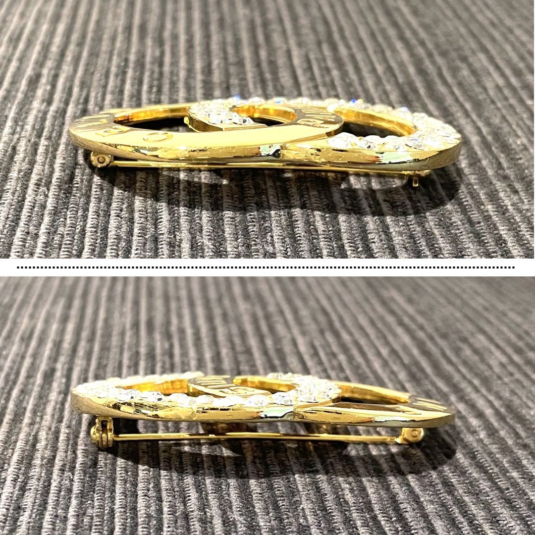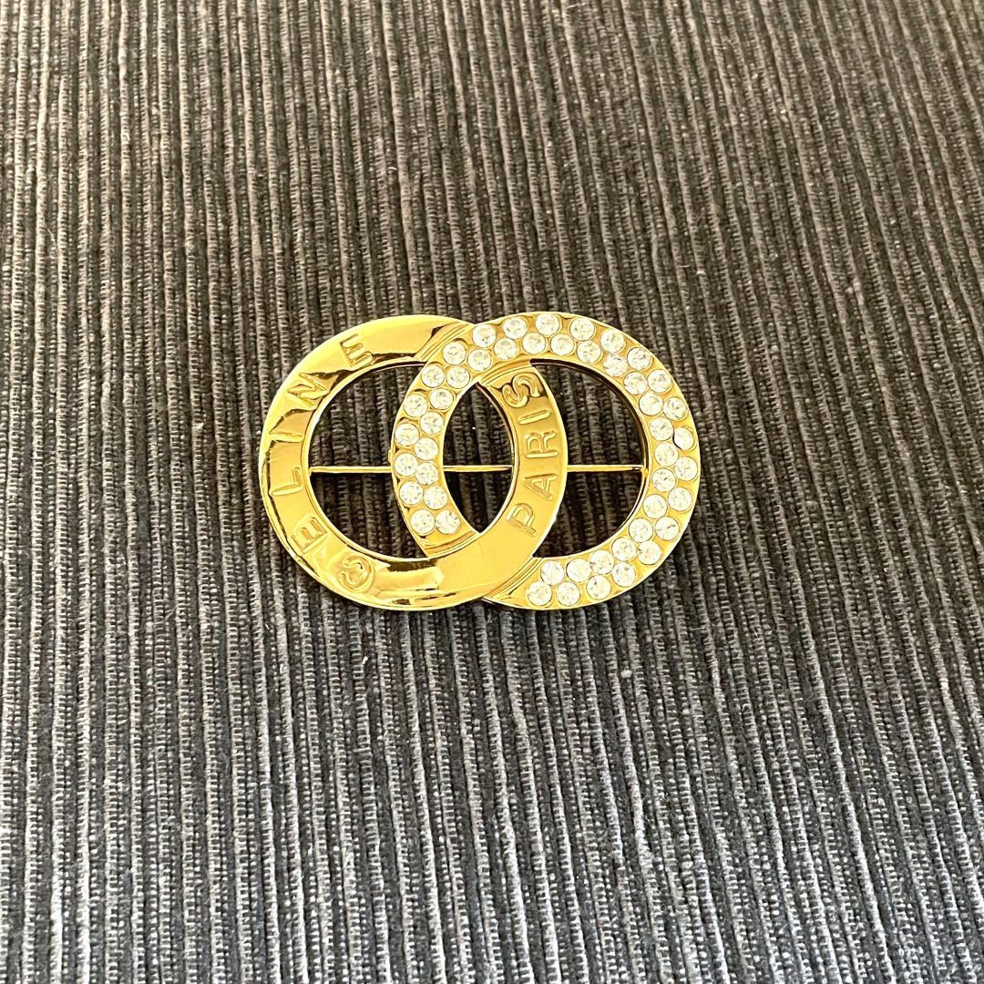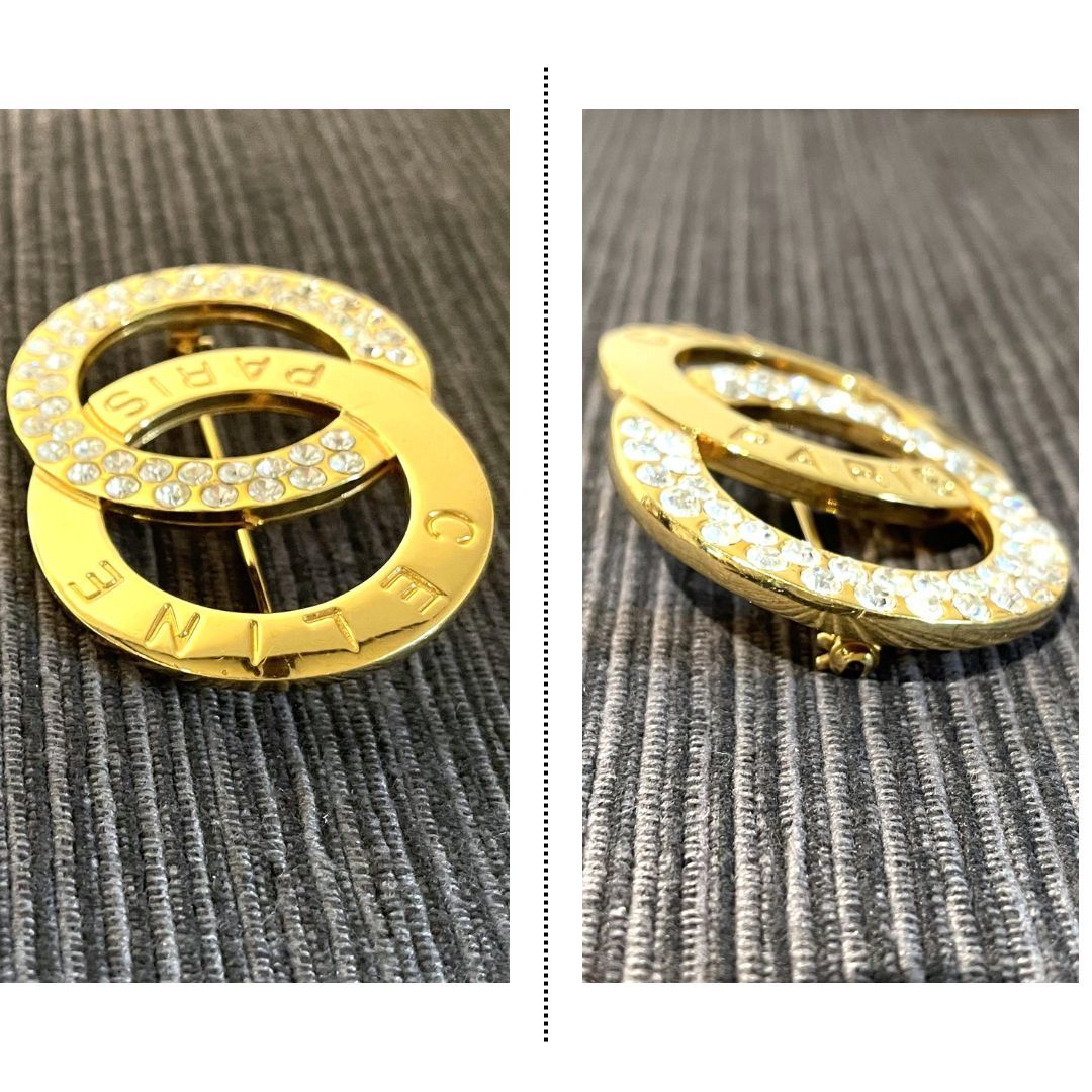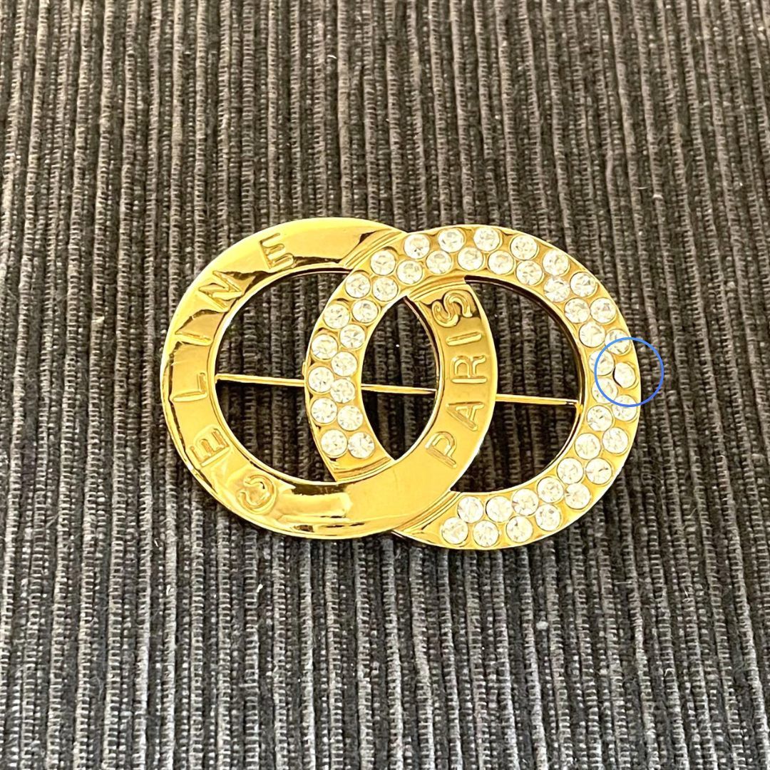 CELINE セリーヌ ブローチ ロゴモチーフ ラインストーン ゴールド アクセサリー