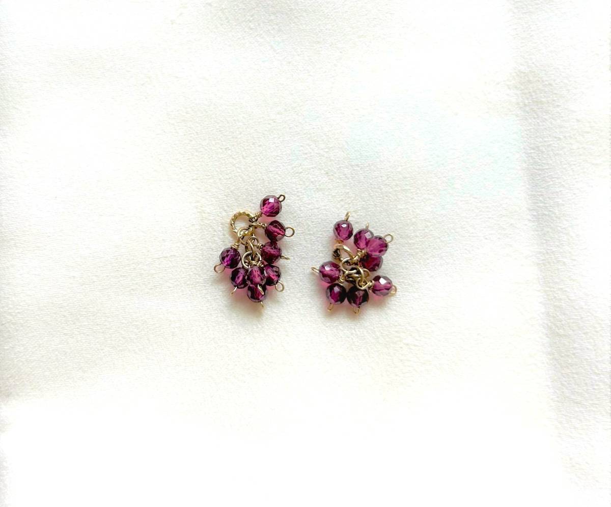新品未使用★ピンクパープル ガーネット ピアスチャーム 天然石 ポロリン ゴールドジュエリー★