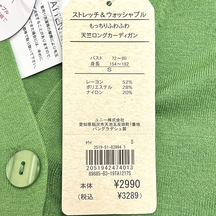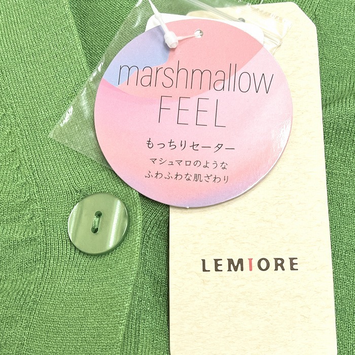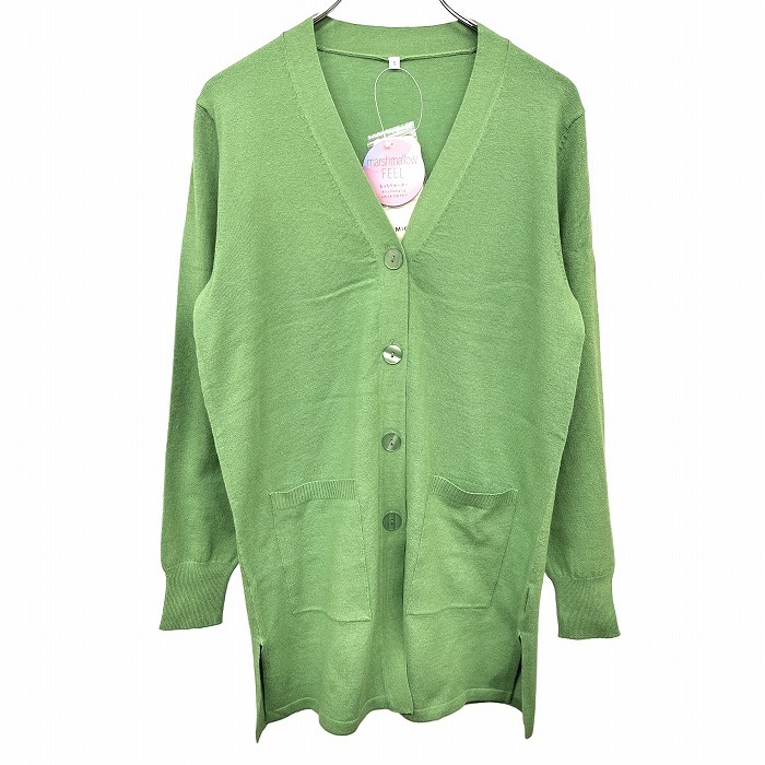 商品タイトル | 【新品】LEMIORE 薄手 ニット カーディガン ストレッチ&ウォッシャブル もっちりふわふわ 天竺 レーヨンなど S グリーン レディース |