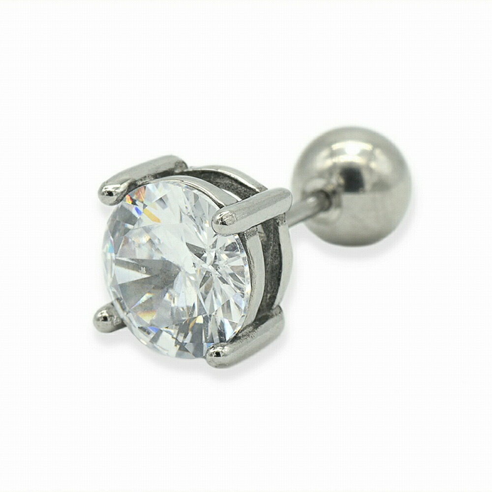 | 4本爪留めの台座にキュービックジルコニアがはまったスタンダードなデザインのステンレス製ボディピアスです。※当商品は1個づつ販売の「バラ売り商品」です、ペアではございません。 ※こちらの商品はサイズ違い・色違いの商品も取り揃えております、宜しければ店舗内検索機能よりお探しになって下さい。 |